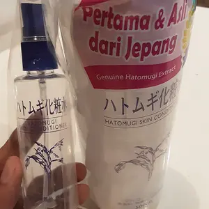 Agak bingung ini ori apa nggak. Soalnya dibotol spraynya ada tulisan Naturienya meskipun dibotol produknya nggak ada. Dan klo dibandingin sm toko lain yg jual hatomugi ori jg (yg ada stiker PT distributornya) dibotol spraynya polos jg spt botol produknya. Ga ngerti dah, semoga ini beneran hatomugi yg gw harepin, bukan yg naturie/autumn dsb. Krn Niatnya beli disini biar dpt yg ori meskipun lbh mahal dikit :(