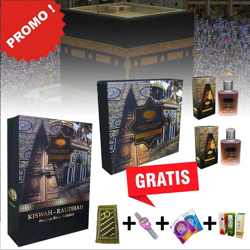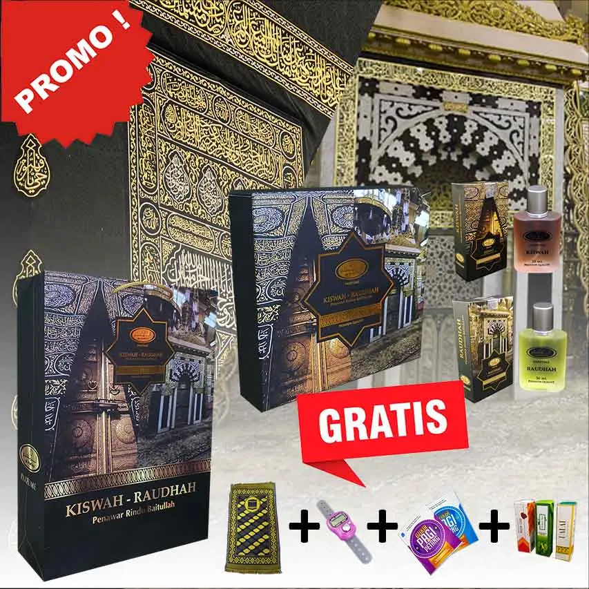 Anda dapat memilih paket satuan maupun paket kombinasi dengan beberapa pilihan botol Kiswah ataupun Raudhoh dalam berbagai ukuran termasuk bonus buku dzikir pagi & petang serta tasbih digital dan paper bag exclusive (selama persediaannya masih ada).