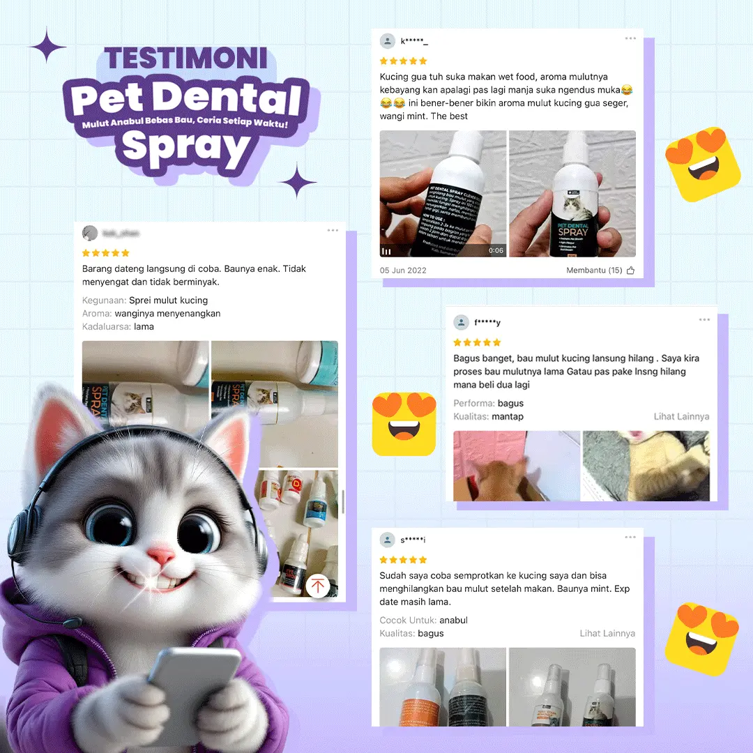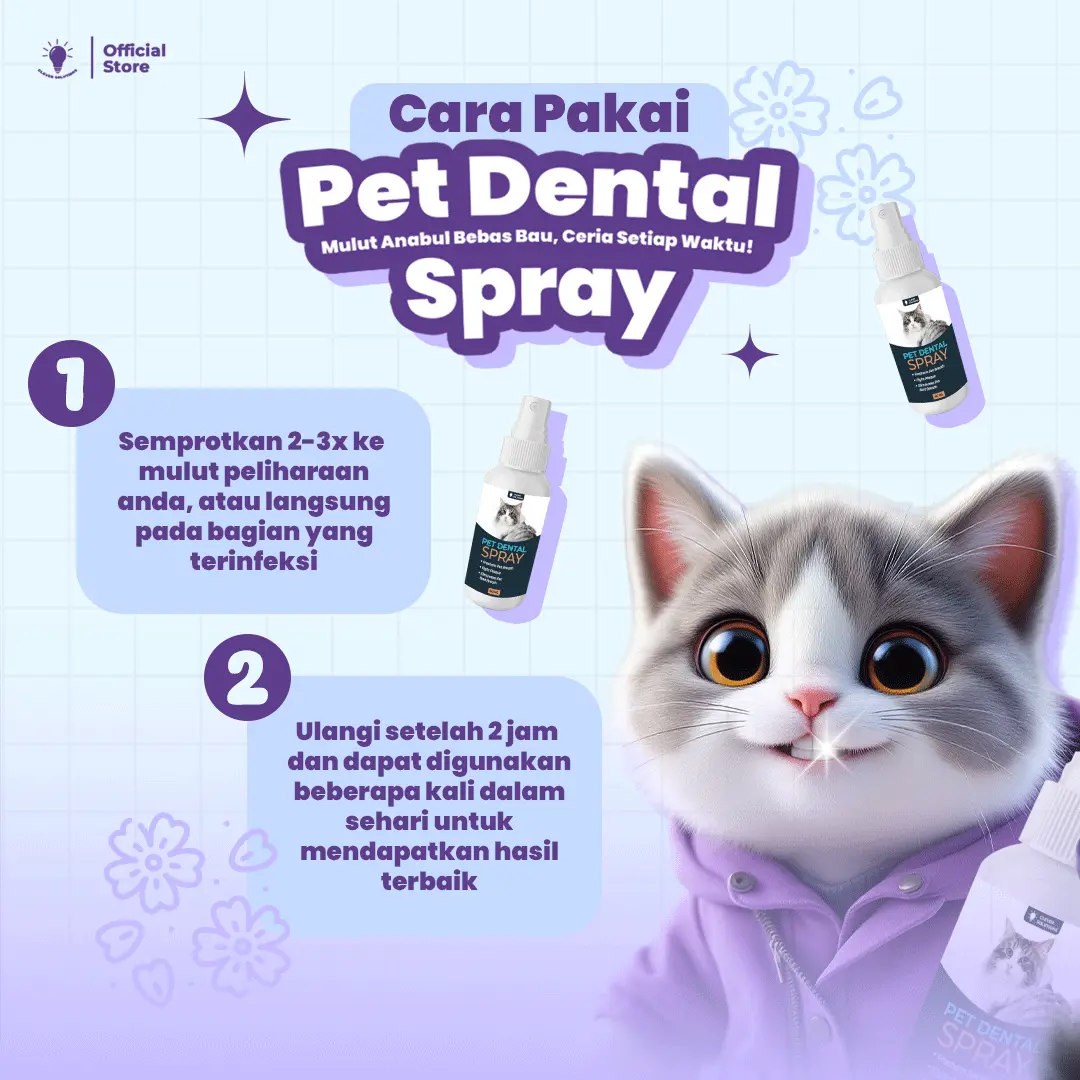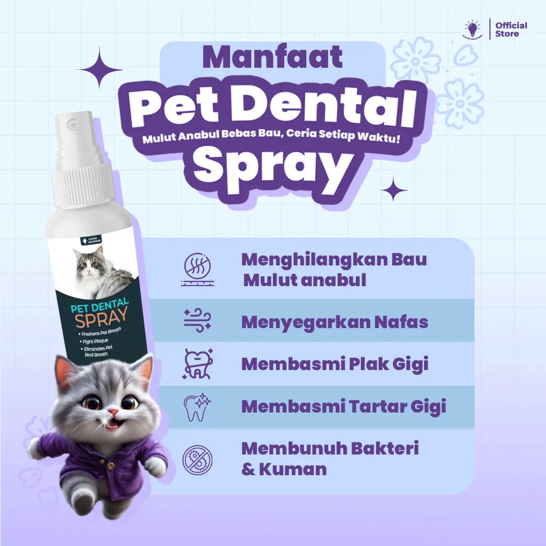 PET DENTAL SPRAY CLEVER SOLUTIONS adalah penghilang bau mulut yang diformulasikan khusus untuk kucing. Spray ini 100% bebas alkohol yang memiliki fungsi menghilangkan bau mulut, menyegarkan napas, membasmi plak gigi & tartar gigi, serta membunuh bakteri & kuman.