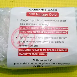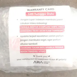 Paketnya di kemas dengan sangat aman, bubble wrap tebal dan mantap. Aroma nya sangat sopan, mudah2an wanginya awet sehingga saya bisa beli lagi di toko ini