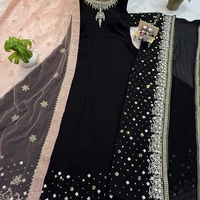 Set outer mewah hitam India wanita