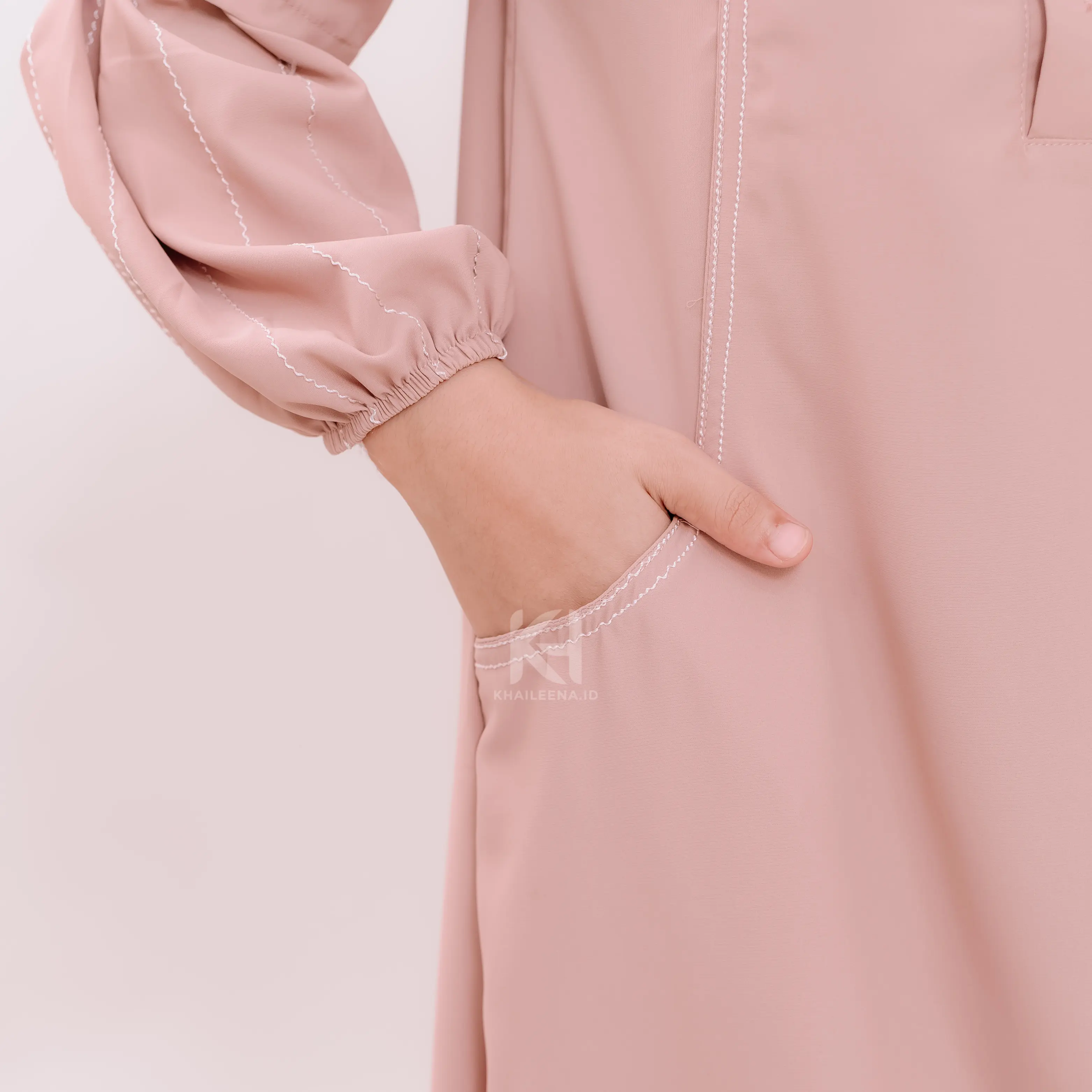 Mecca Set Gamis Abaya Anak Mecca Kids Tali Serut Pinggang 5-15 Tahun Bahan Jersey Premium Adem Nyaman Set Hijab dengan Saku dan Kancing Lucu Kancing Lucu Di Lengan Dan Tali Serut Dipinggang