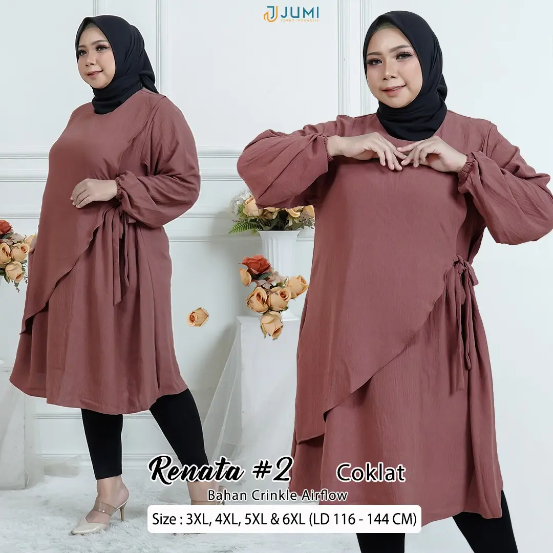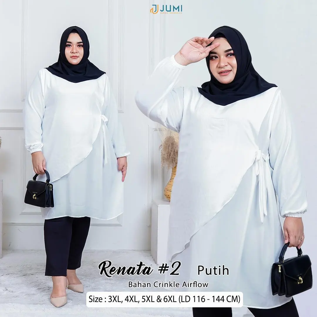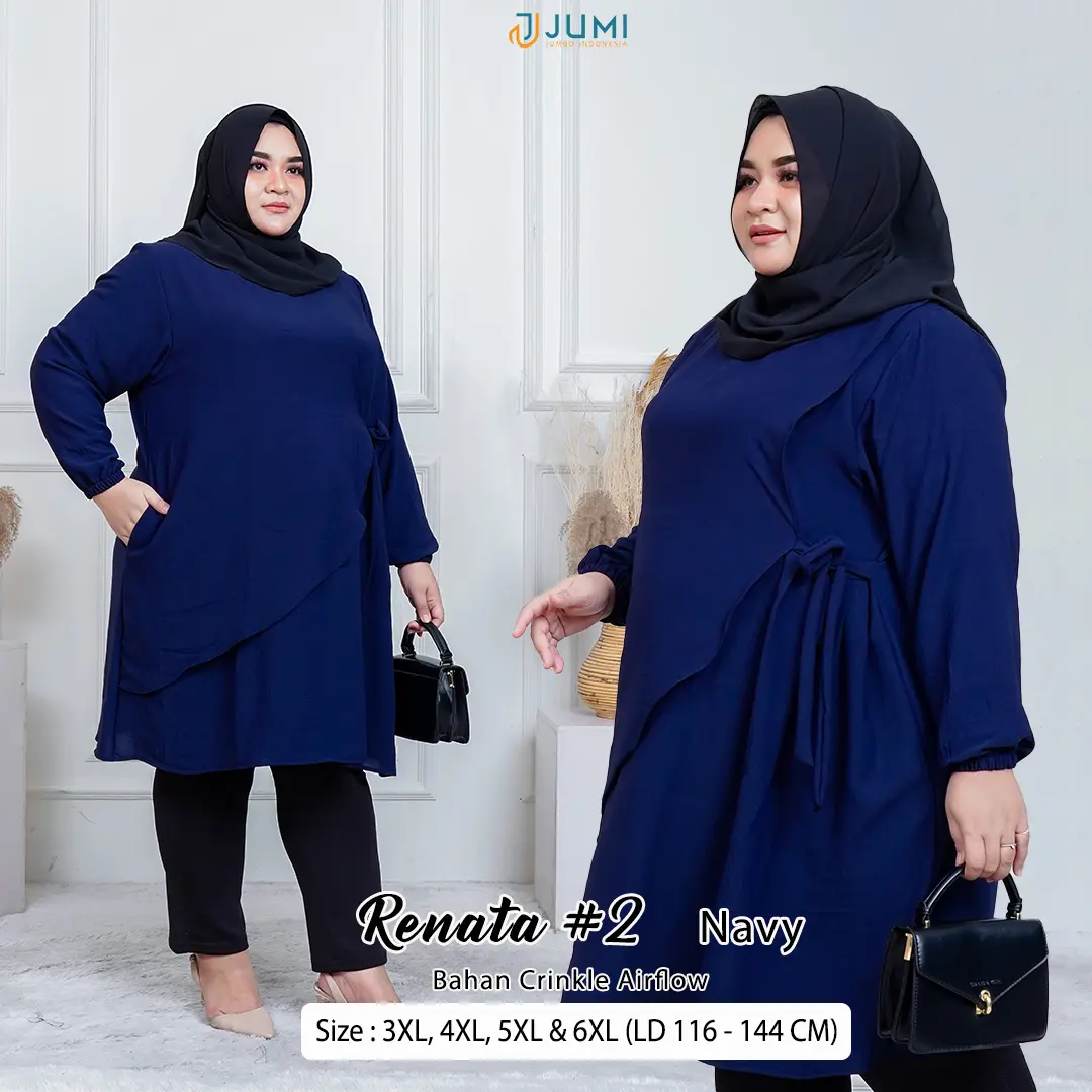 ✨ Renata Tunik Crinkle Airflow Tebal - Cocok untuk lebaran, kerja, dan kuliah. Tersedia ukuran 3XL-6XL, LD 116-144cm, BB 80-130kg. Bahan crinkle airflow tekstur tidak merata, cukup tebal, tidak mudah gerah. Detail: kancing belakang, manset karet, saku dalam kanan, rompi kanan depan dan samping kiri. Garansi refund 100% dan tukar size.