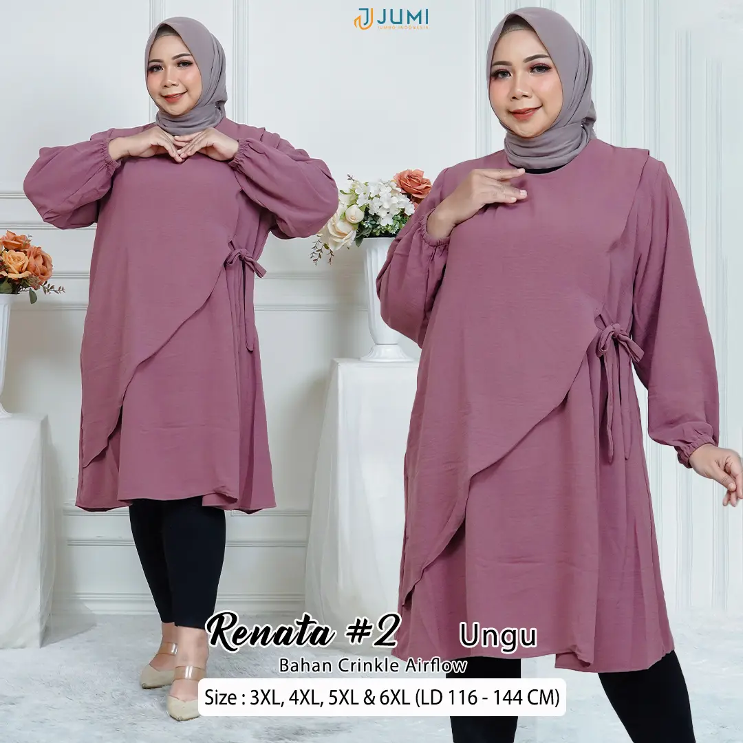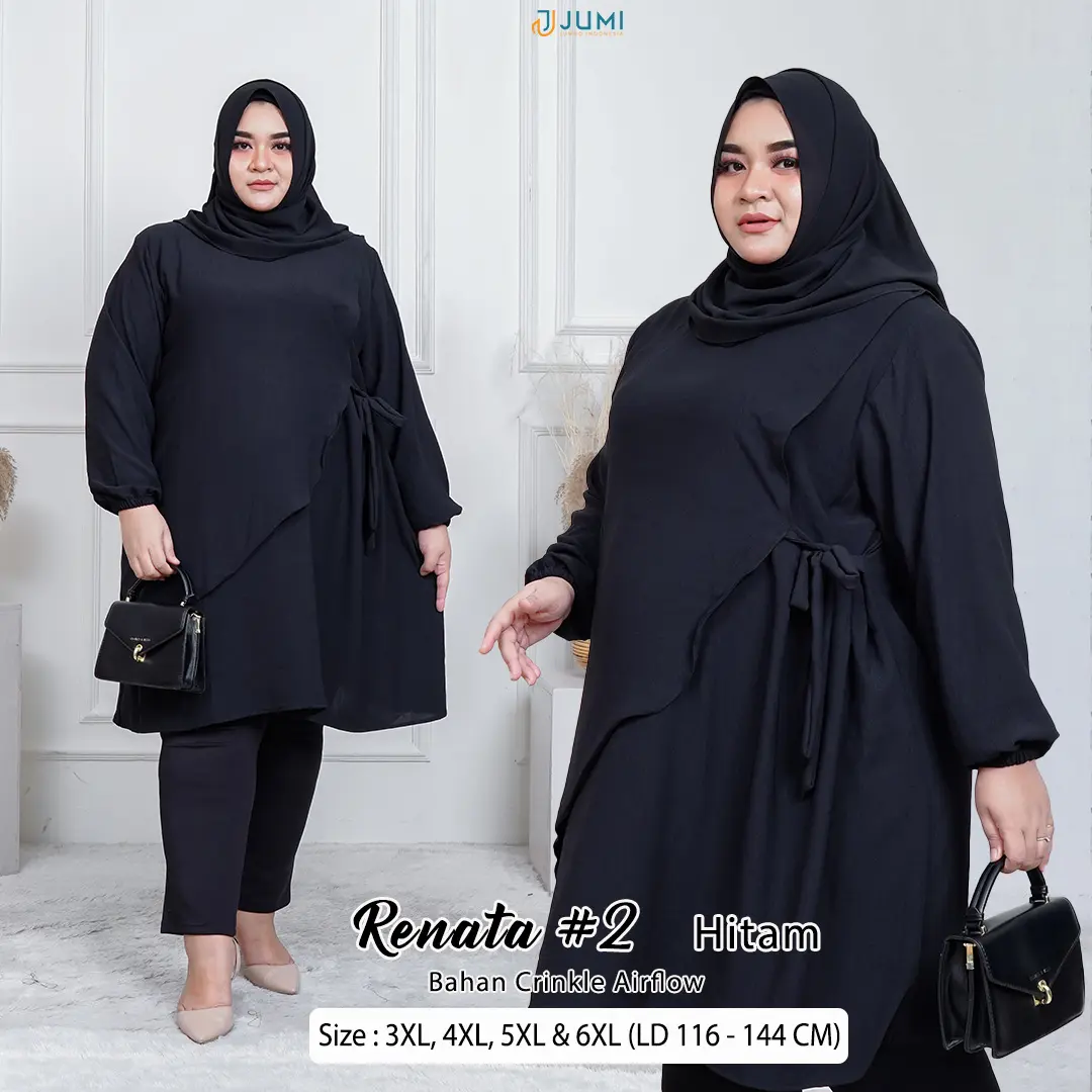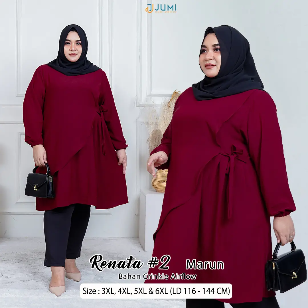 ✨ Renata Tunik Crinkle Airflow Tebal - Cocok untuk lebaran, kerja, dan kuliah. Tersedia ukuran 3XL-6XL, LD 116-144cm, BB 80-130kg. Bahan crinkle airflow tekstur tidak merata, cukup tebal, tidak mudah gerah. Detail: kancing belakang, manset karet, saku dalam kanan, rompi kanan depan dan samping kiri. Garansi refund 100% dan tukar size.
