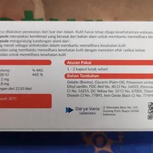 Setiap kapsul lunak mengandung Vitamin E alami 100 IU, Astaxanthin 2 mg, Lycopene 1,8 mg