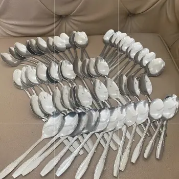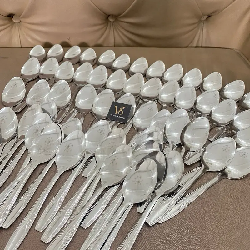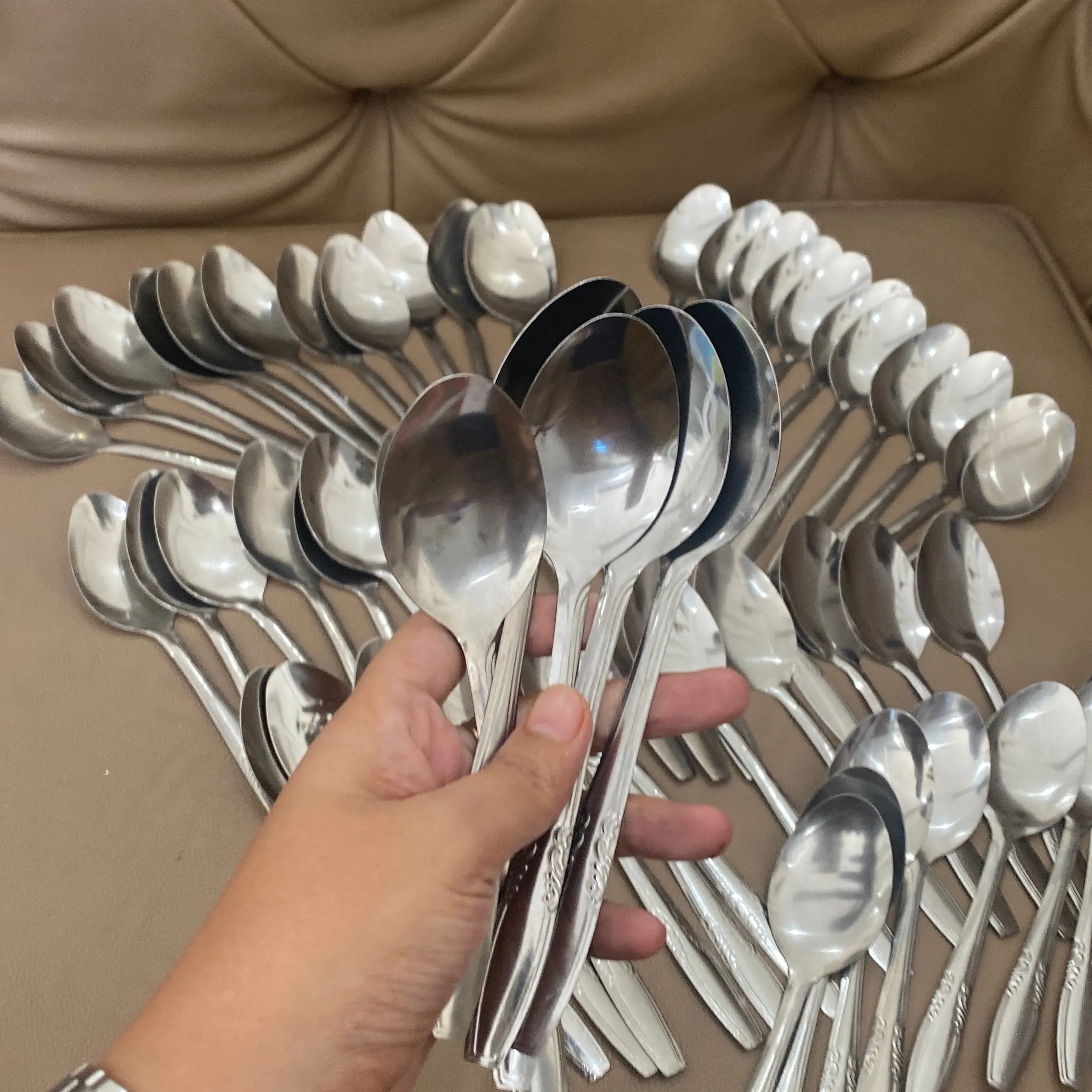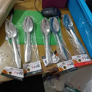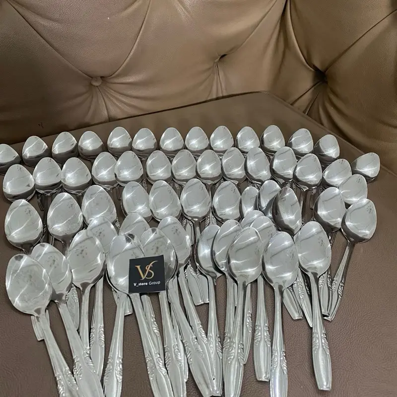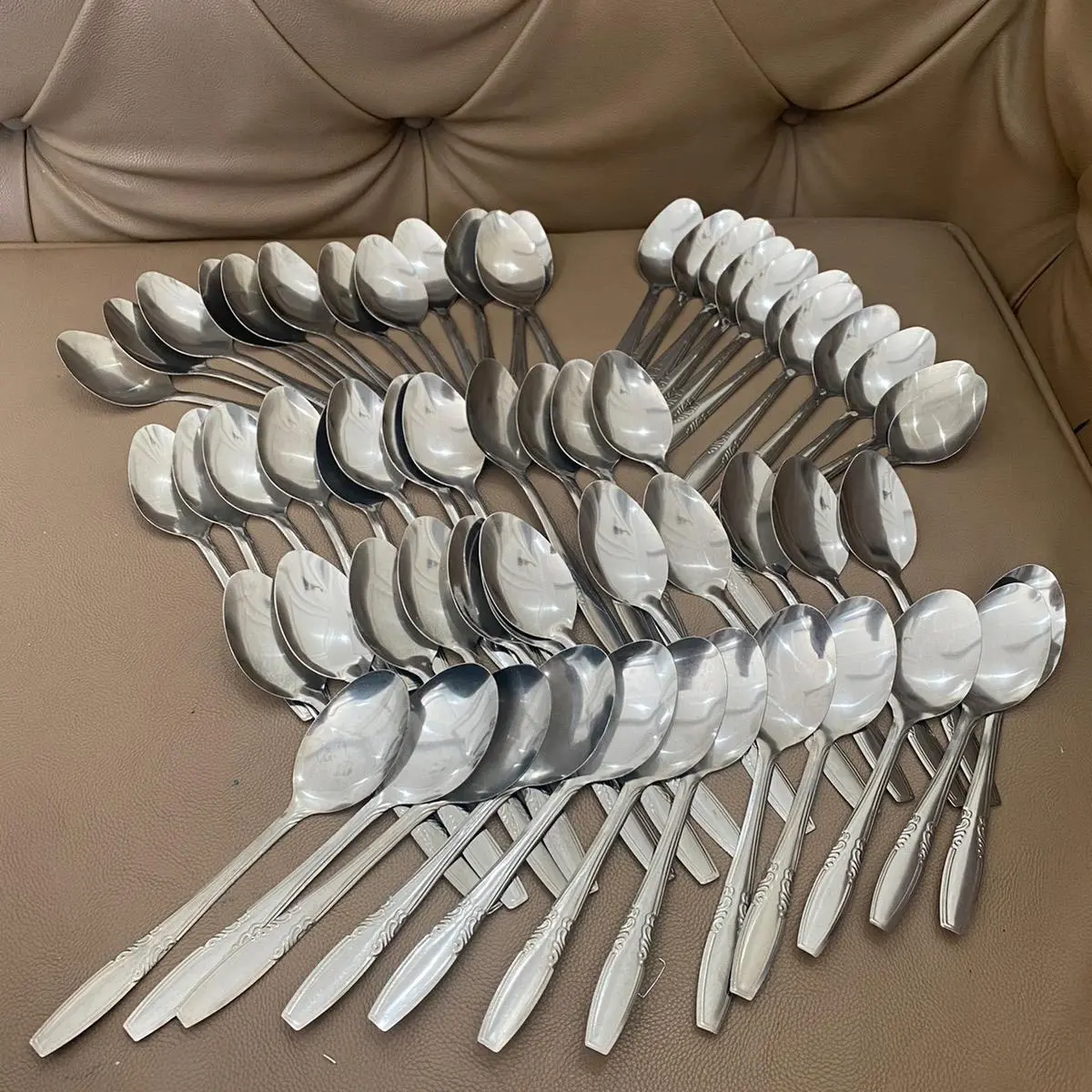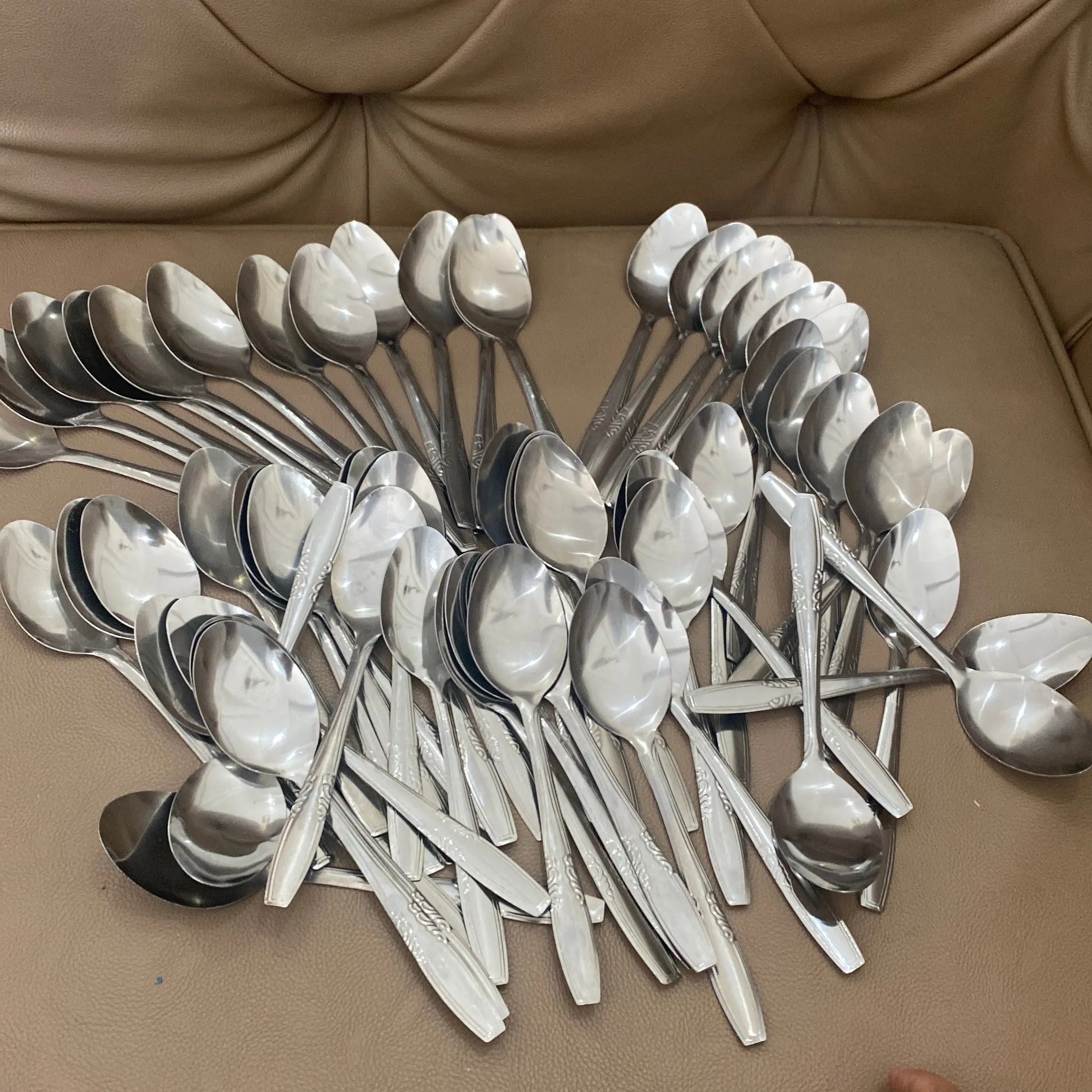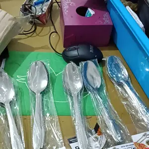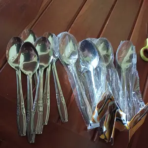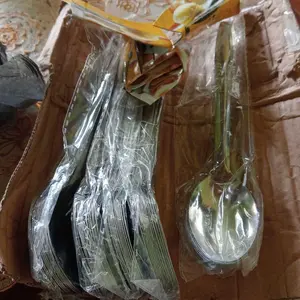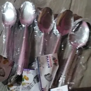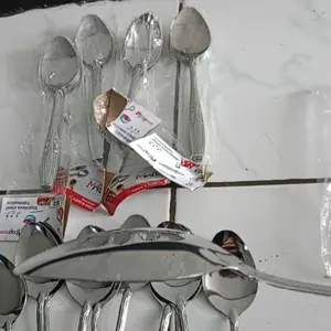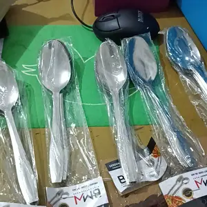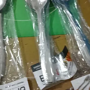 Menawarkan kepada Anda sendok makan stainless polos dengan isi 60 sendok makan dalam 5 pak.