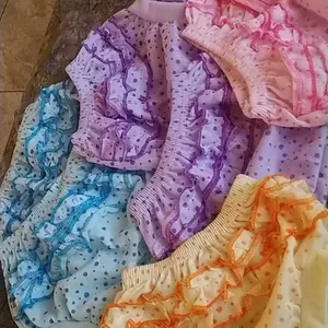 cd anak cewe rempel polkadot untuk umur 0-6 tahun dengan ukuran L dan XLukuran L:Lp30cm(belum melar) untuk anak 0-2 tahunukuran XL:lp 34cn(belum melar)untuk anak 3-6tahun