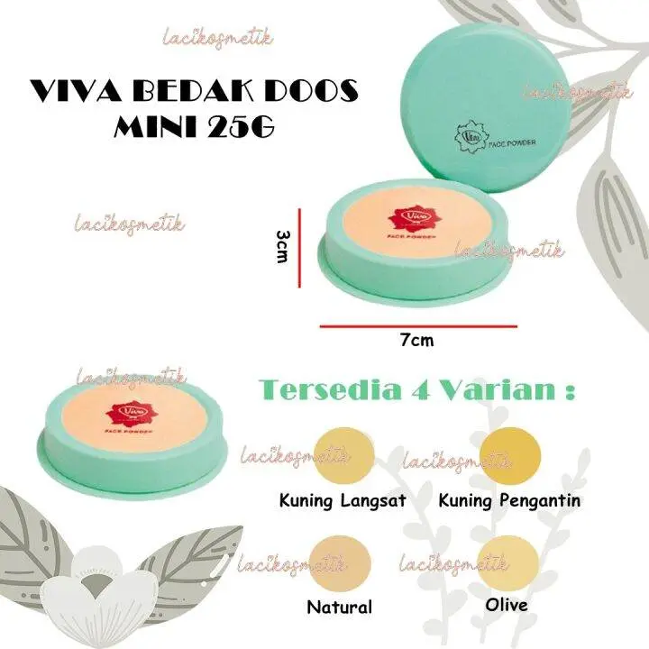 Bedak Tabur Viva Cosmetics Doos Mini 25 gr no puff adalah bedak tabur halus untuk wajah, memberikan tampilan halus dan segar dengan aroma bunga lembut.