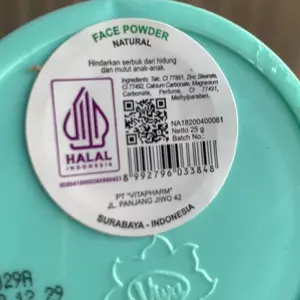 Berat bersih produk ini adalah 25g dengan umur simpan selama 24 bulan. Produk ini diproduksi di Indonesia dan memiliki nomor registrasi BPOM NA18200400193. Bedak ini tidak mengandung alkohol atau aerosol, cocok bagi mereka yang menginginkan produk bebas alkohol. Selain itu, bedak tabur ini memiliki sertifikasi Halal serta tidak mengandung alergen sehingga aman digunakan oleh semua jenis kulit.