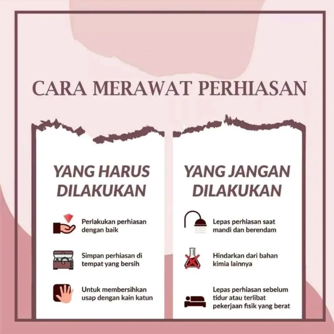 1. Hindari kontak langsung dengan parfum, hand body, foam rambut, serta yang mengandung bahan kimia lainnya. Untuk menghindari terjadinya reaksi unsur kimia yang membuat warna berubah kusam.