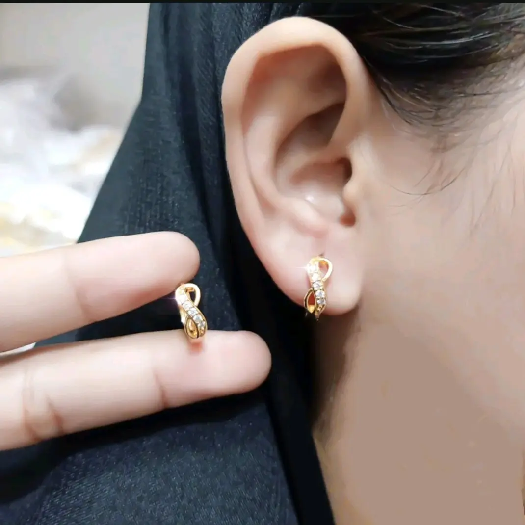 Perhiasan Fashion Wanita Anting Clip Titanium Motif Angka Delapan Terbaru 2026 Emas Earrings