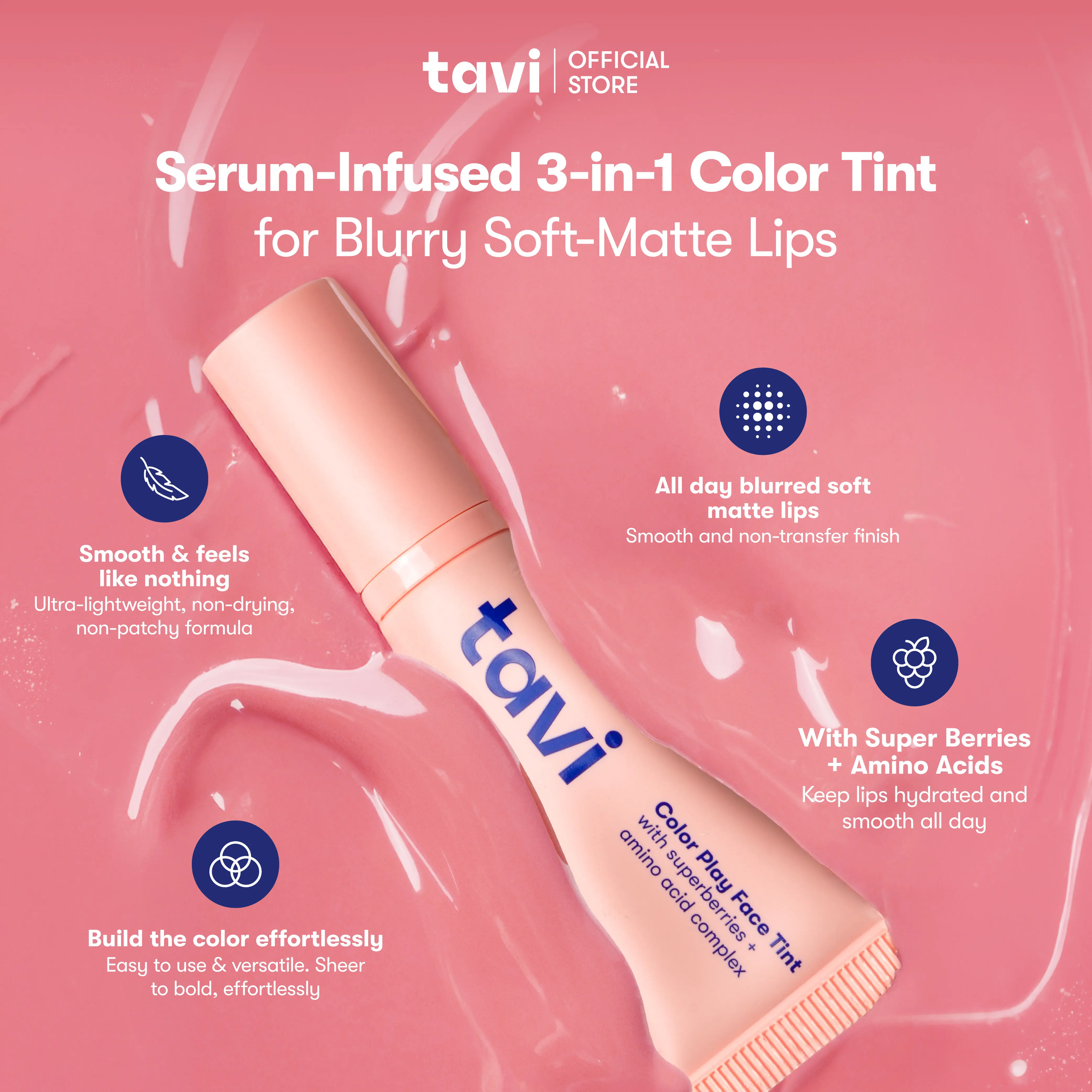 TAVI 3-in-1 Color Tint dibuat untuk tampilan bibir yang effortless lembut, dan natural dengan hasil blurry soft-matte. Cocok dipakai untuk berbagai look di semua warna kulit.
