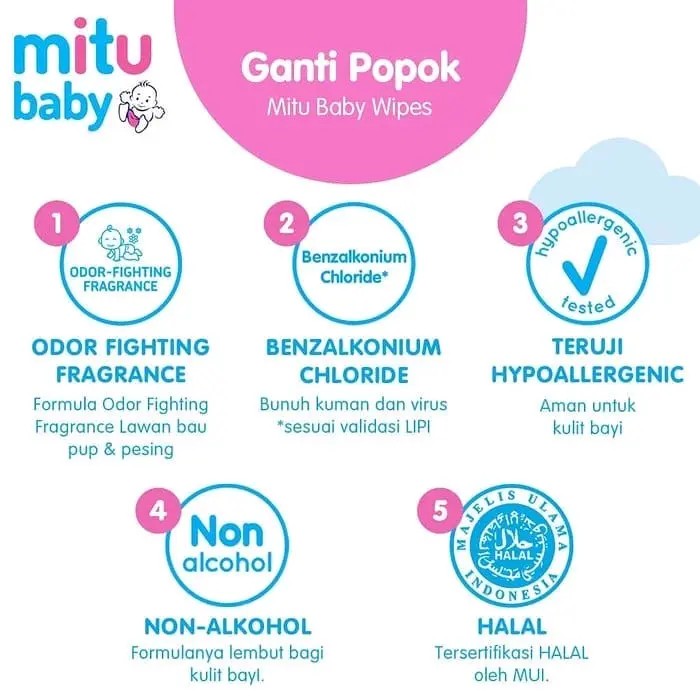 MITU BABY GANTI POPOK Tisu basah dengan formula Fresh