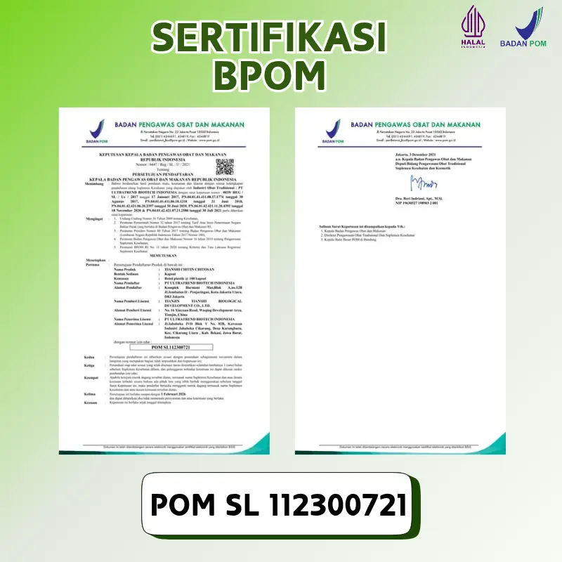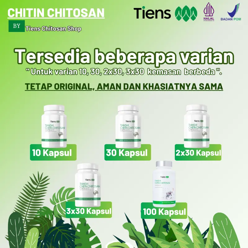 Produk Chitin Chitosan terbuat dari serat makan hewani dimana merupakan zat penting selain protein, lemak, mineral,karbohidrat dan vitamin sebagai serat makanan. POM: SL112300721 Anjuran minum: 2x2 kapsul sehari (pagi dan malam) Cara minum: diminum sebelum makan dengan air hangat.