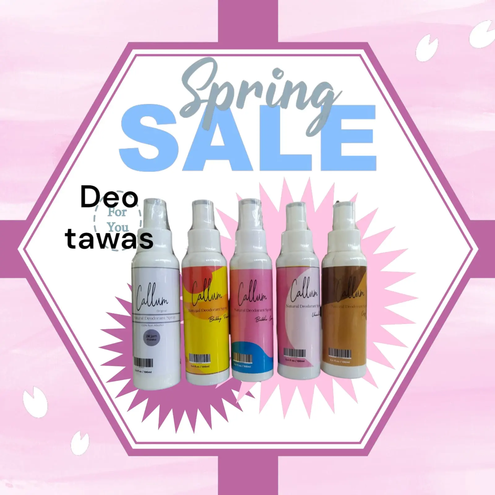 Selain itu, deodorant spray ini tidak mengandung alkohol atau aerosol sehingga aman digunakan setiap hari. Callum Deodorant Tawas paket 5pcs penghilang bau ketiak adalah produk asli buatan Indonesia dengan bentu