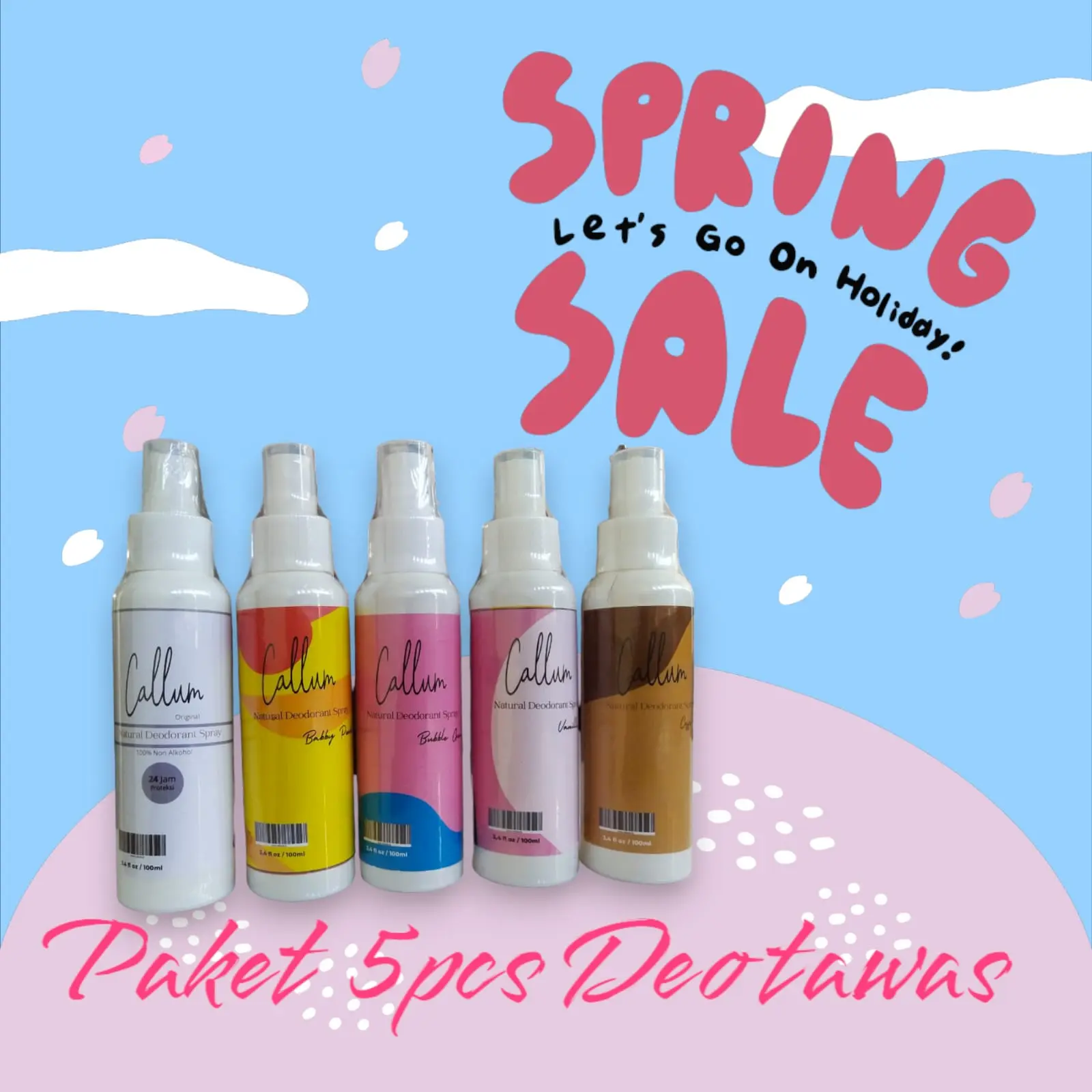 Paket 5pcs Deodorant Spray Callum Aroma Original Penghilang Bau Ketiak Tawas tawas anti bakteri hook deodorant natural
