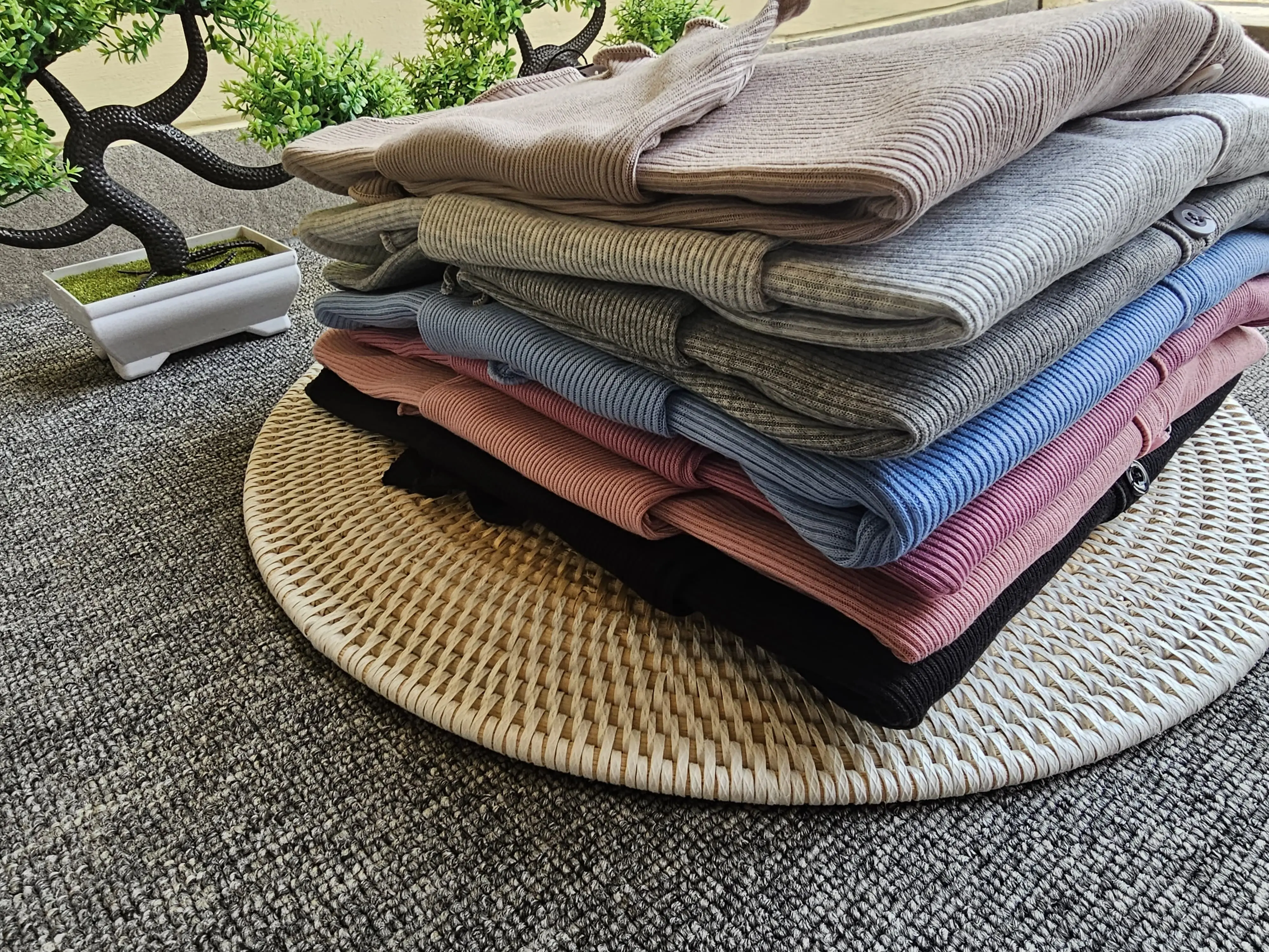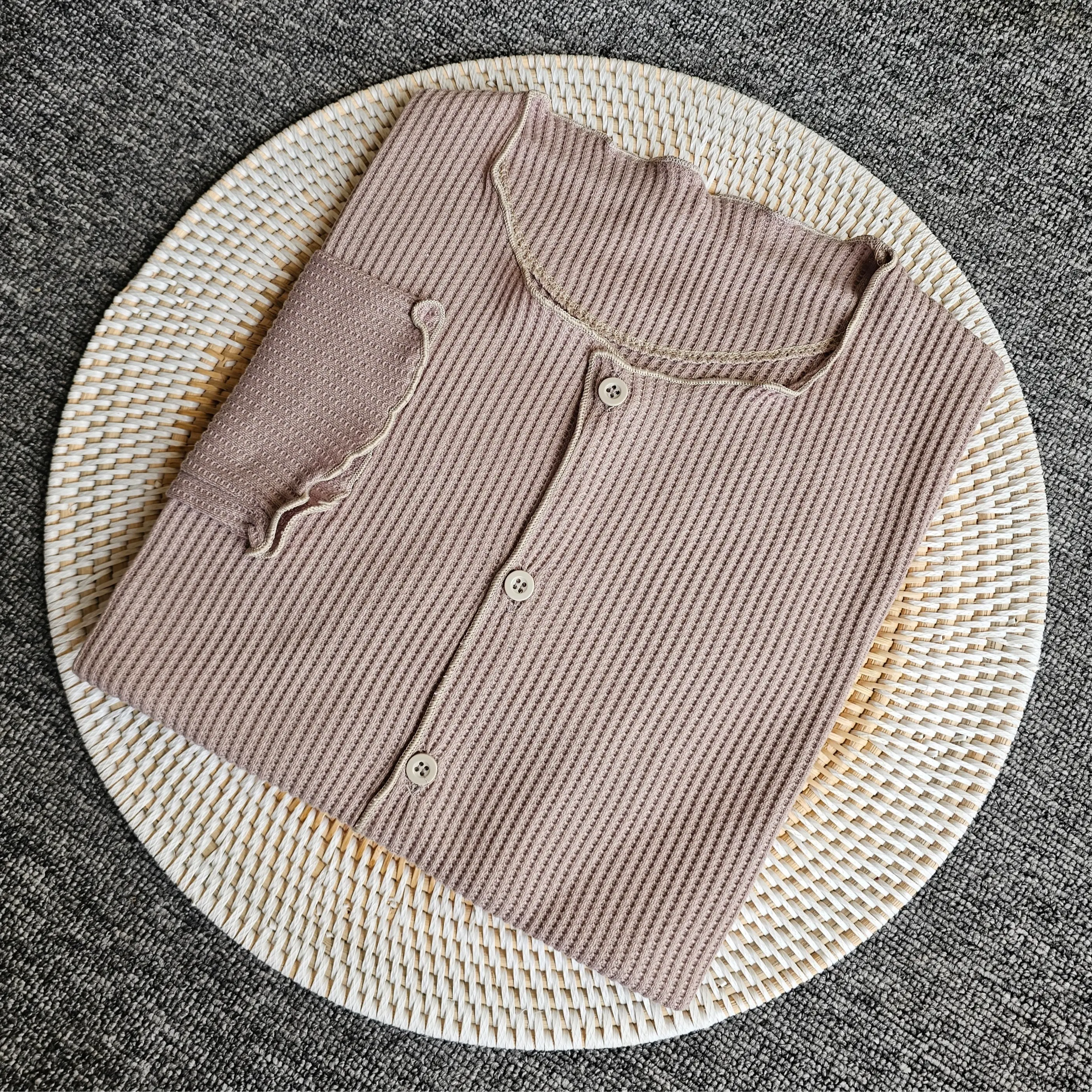 HS CARDIGAN STANDAR polos rajut wafle lengan panjang rajut Atasan Wanita Kardigan