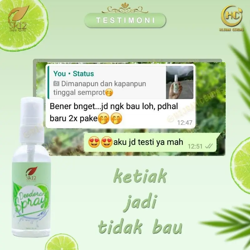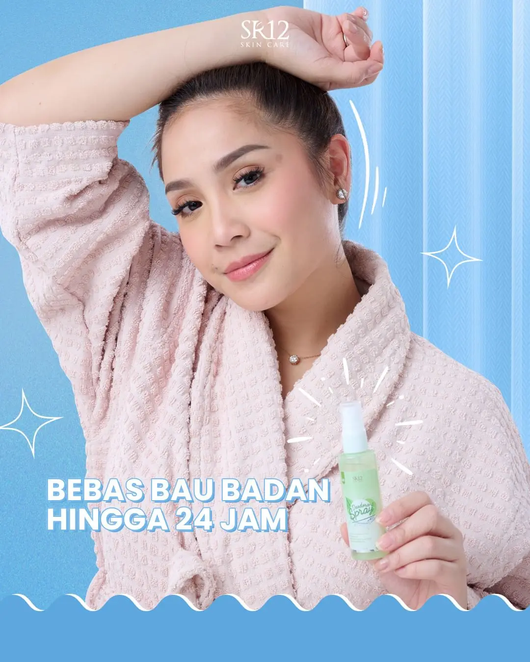 ✨ Deodorant Spray SR12 (Produk Best Seller) dengan BPOM: NA18200900002. Netto 60 ml. Terbukti bikin ketiak gak bau lagi. Beda dari yang lain, deodorant ini non alkohol dan gak pake pewangi parfum. Jadi, bukan semprotan parfum.