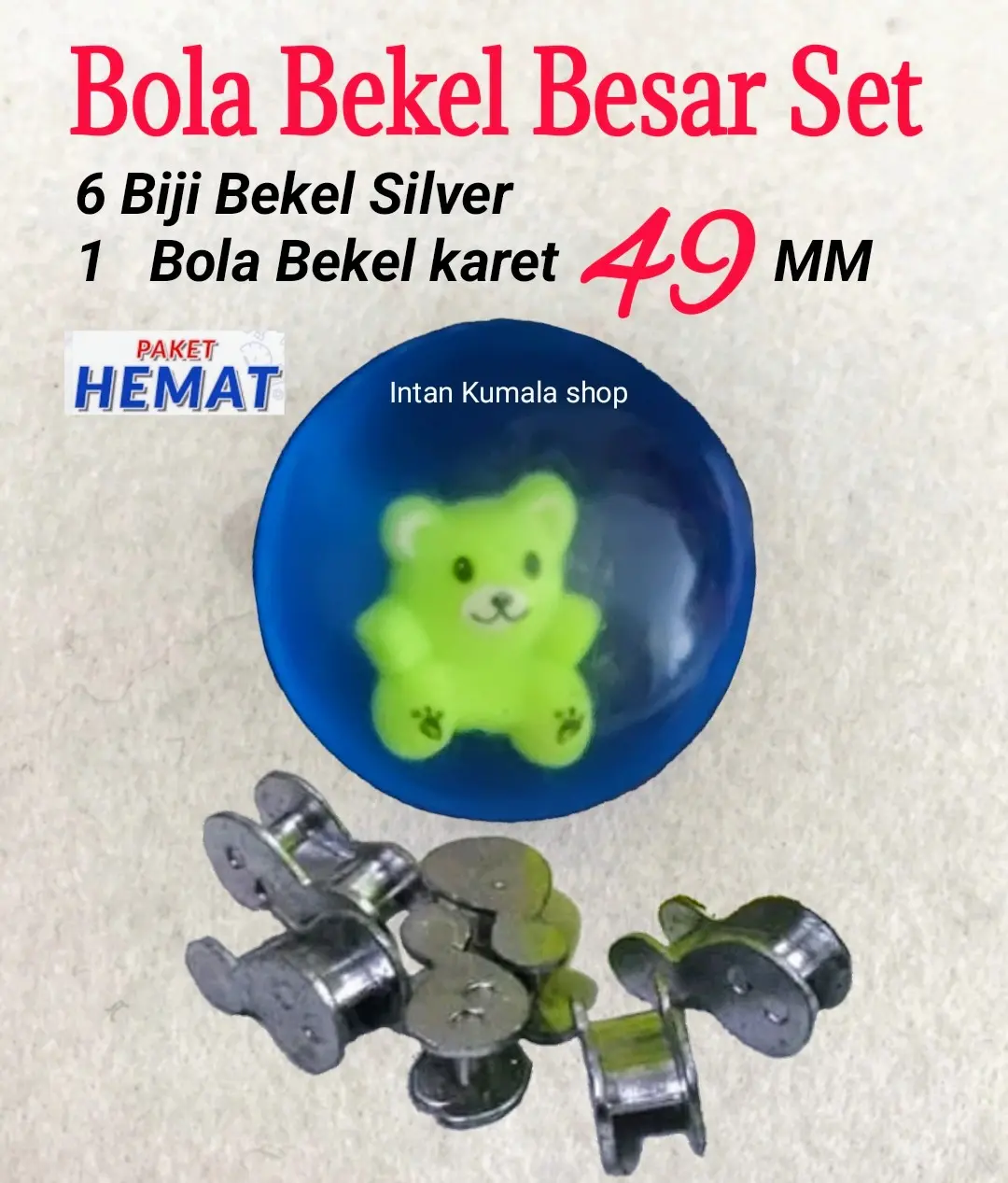 - Satu buah bola bekel ukuran diameter 49 mm warna tergantung stok