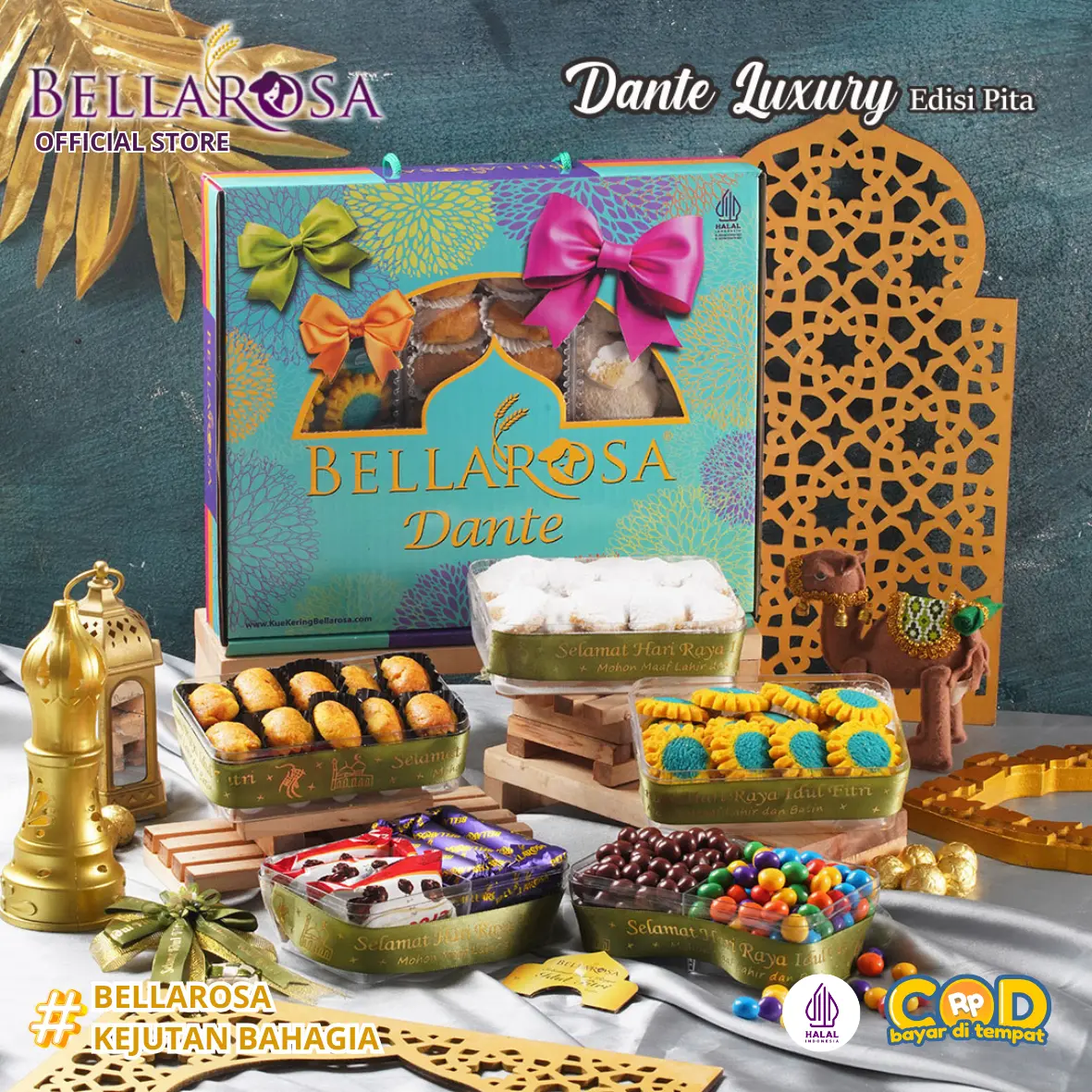 BELLAROSA mempersembahkan [BELLAROSA Dante Luxury – Edisi Masjid] – paket eksklusif yang elegan, lezat, dan siap dijadikan hampers hadiah teristimewa untuk keluarga, kerabat, atau rekan bisnis. (Paket Hampers Kue Lebaran)