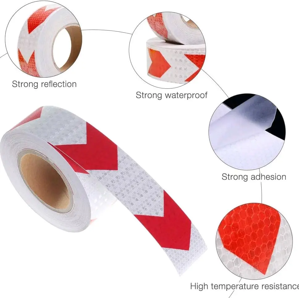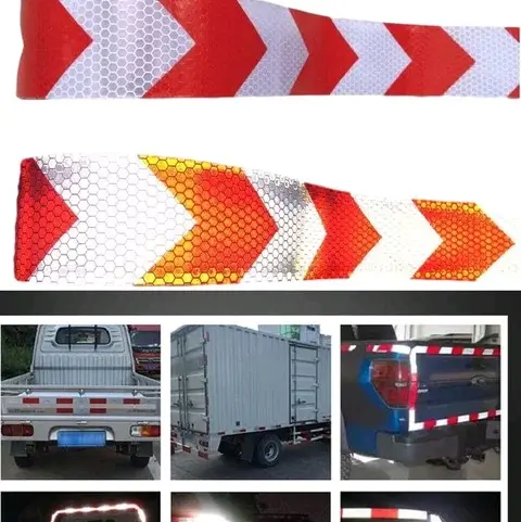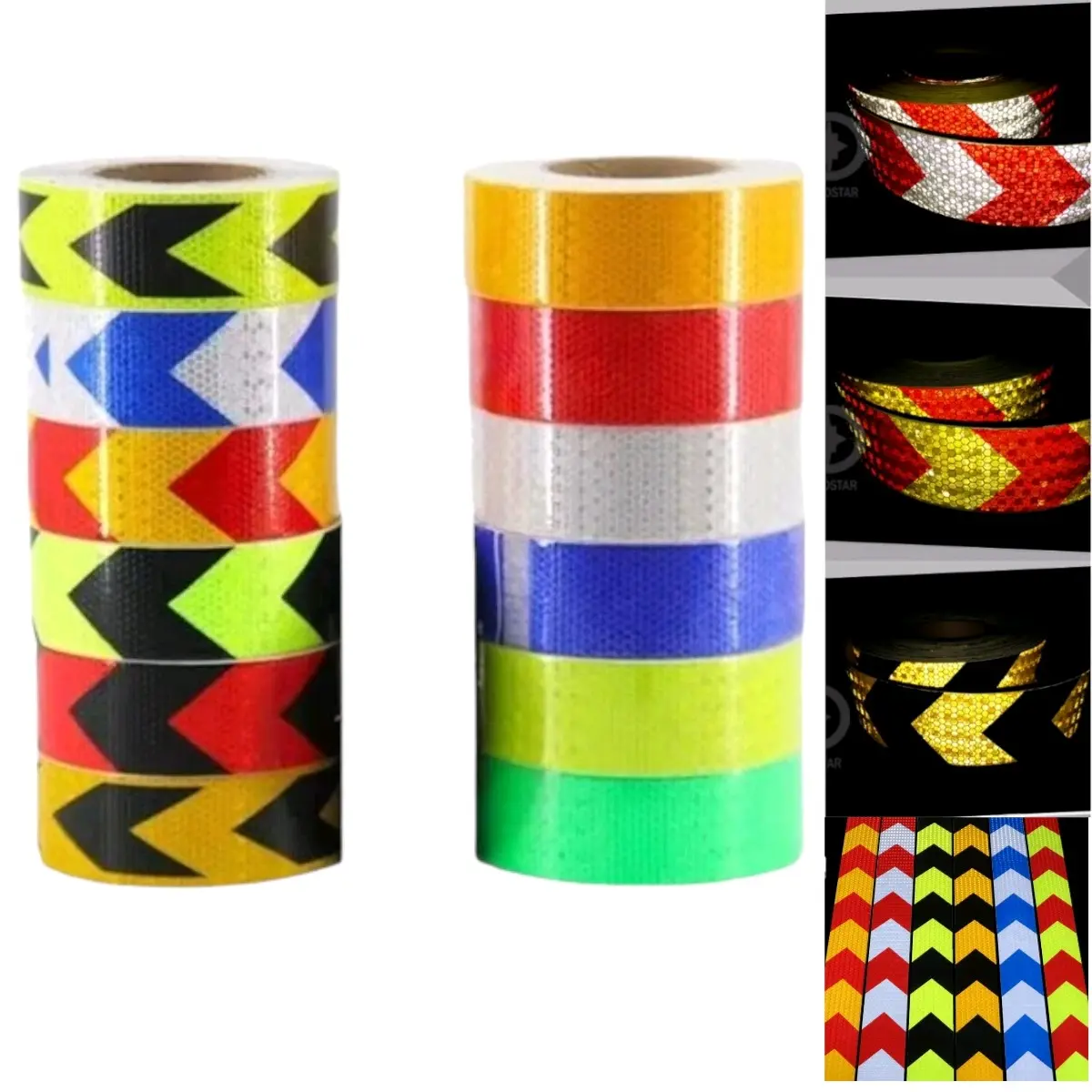 5. Sticker Reflective 50mm Skotlet Stiker Reflektor Lakban Pemantul Cahaya Tanda Panah Warning Sign Replektor Reflektif Meteran Roll Pita Peringatan Malam