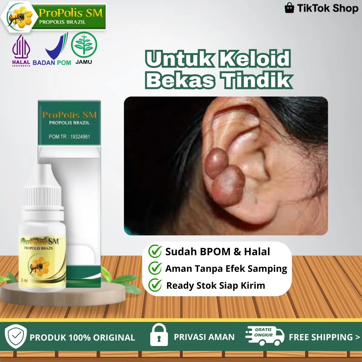 Propolis SM - Untuk Penghilang Keloid Bekas Luka Menonjol Di Telinga, Keloid Menonjol Bekas Tindik Di Telinga