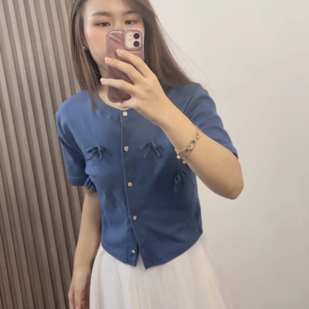 Baju nya bagus, bahan nya tebel, warnanya jg soft, detail kancing nya jg lucu, thank you ♡