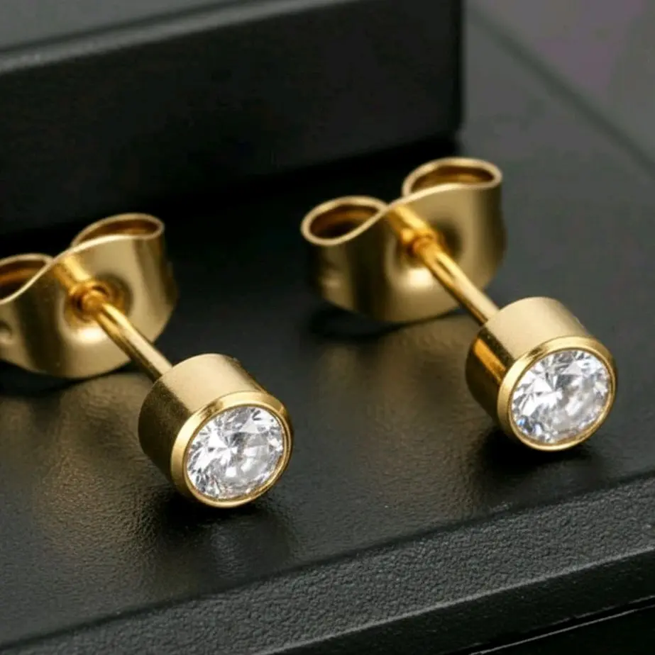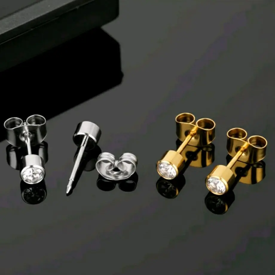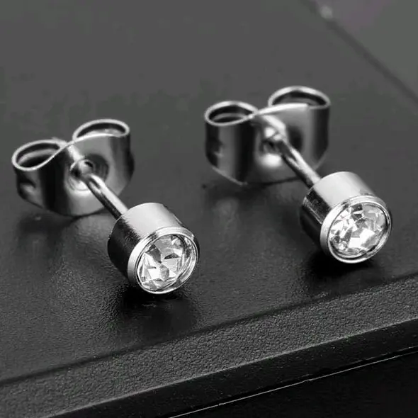 Anting tindik mata berlian ini dijual dalam paket 2 pcs. Cocok untuk pria dan
