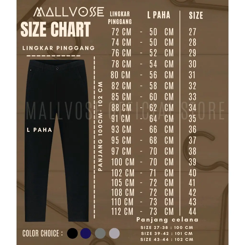 Uk. 27 LP : 72 Cm L Paha : 50cm L Ankle : 32cm