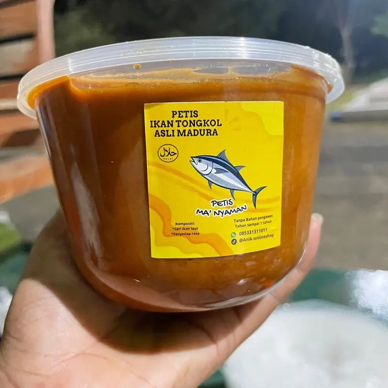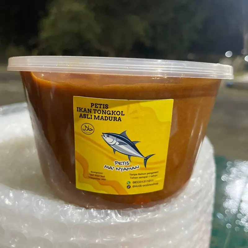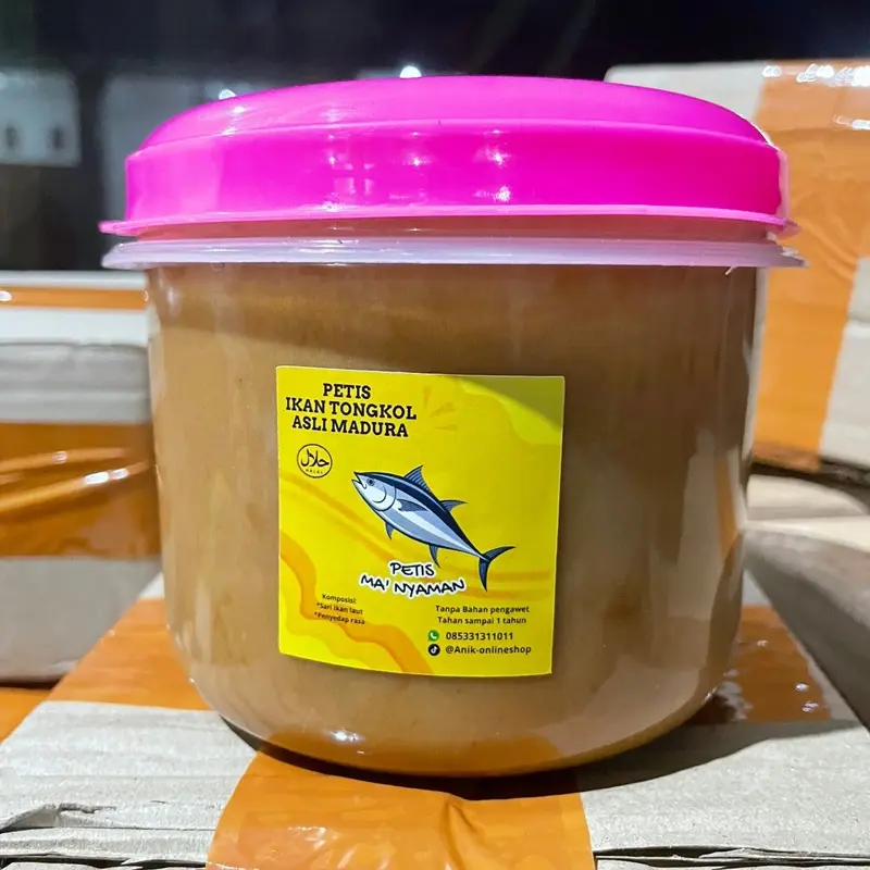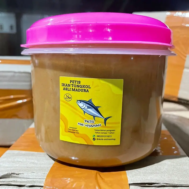 Petis Tongkol 1kg petis ma’nyaman. Terbuat dari sari ikan tongkol asli dari madura