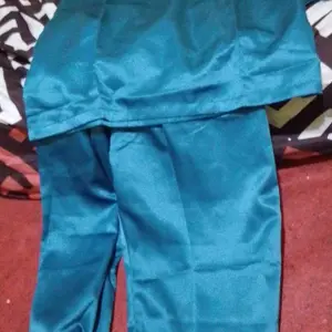 Setelan baju teluk belanga Melayu anak laki laki terbuat dari bahan satin Roberto sehingga dingin tidak nerawang dan nyaman dipakai
