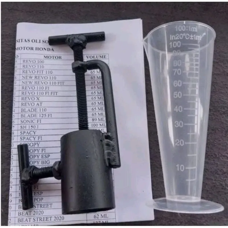 Dalam kemasan produk, terdapat Trecker penekan spi shokbeker dan gelas takar oli berukuran 100mm. Dengan penggunaan gelas takar tersebut, Anda tidak perlu khawatir lagi dalam menakar kebutuhan oli yang akan digunakan pada motor Anda.