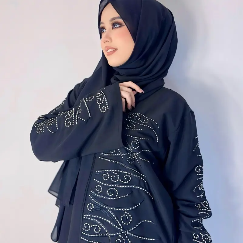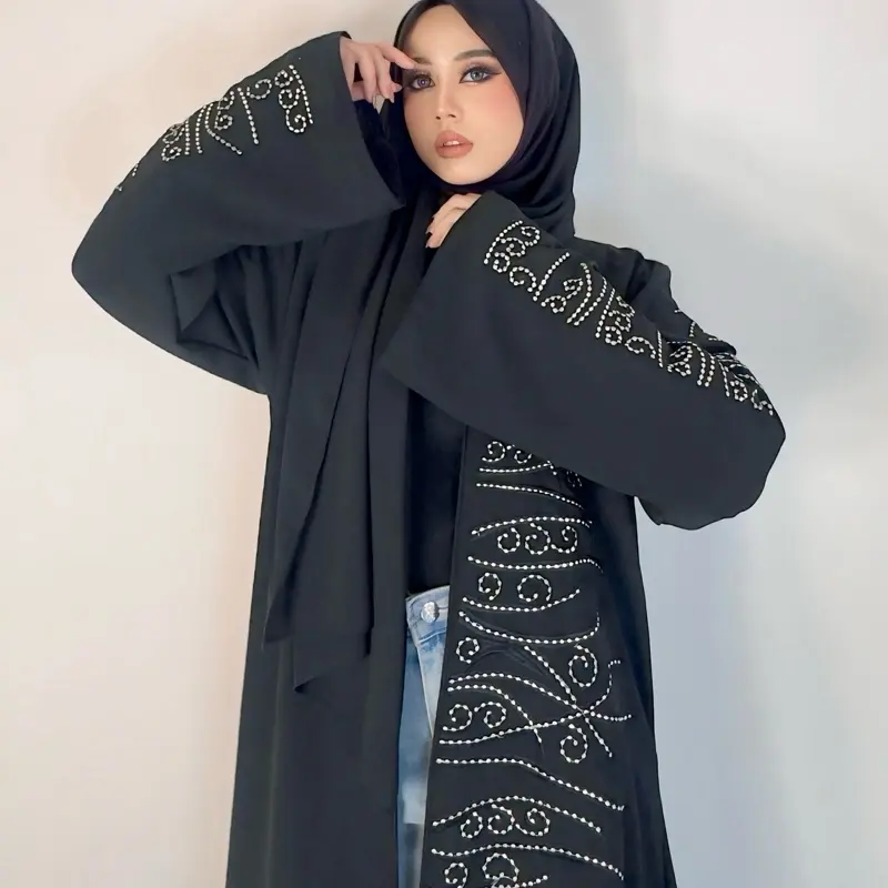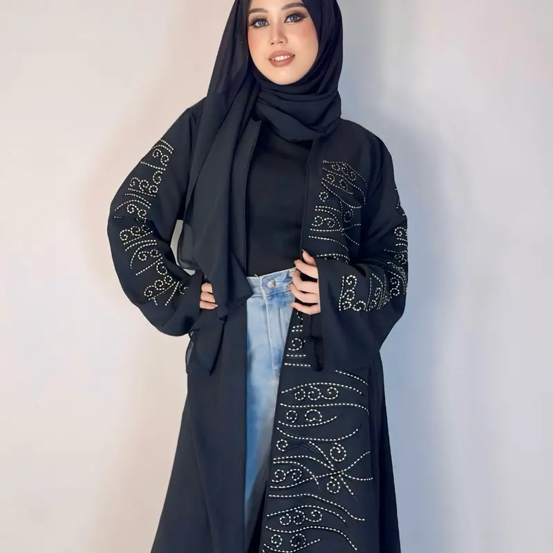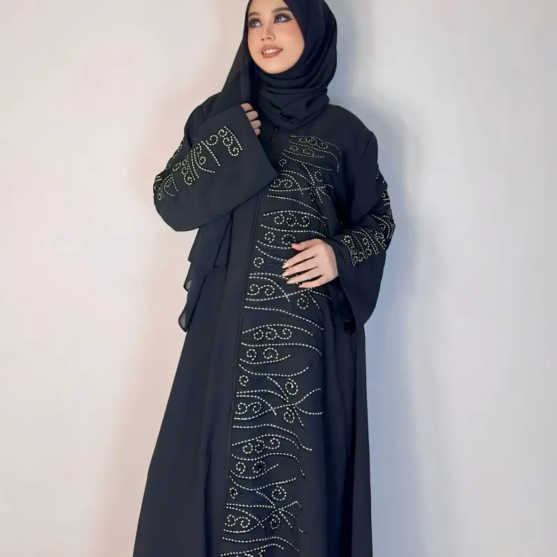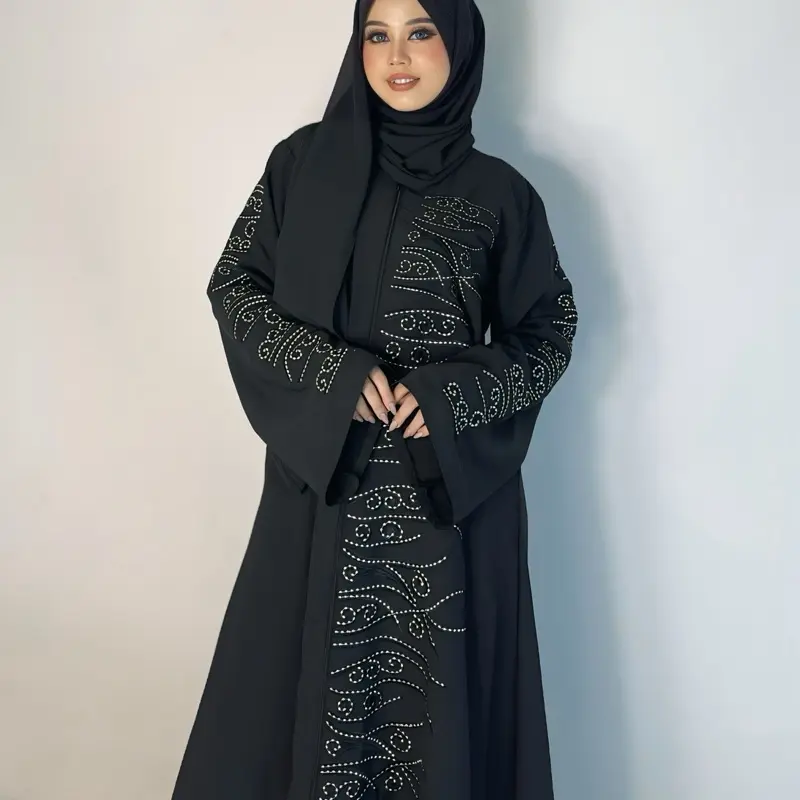 Abaya Arumma memberikan kenyamanan dan elegansi. Bahan saudi premium membuat abaya ini adem dan halus. Motif mata manik cantik menambah keindahan. Tersedia dalam berbagai ukuran untuk kenyamanan Anda. 🌟