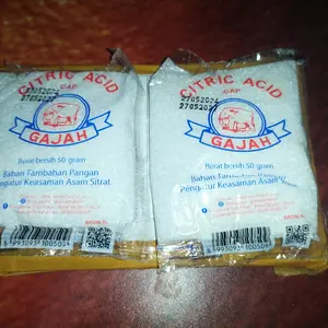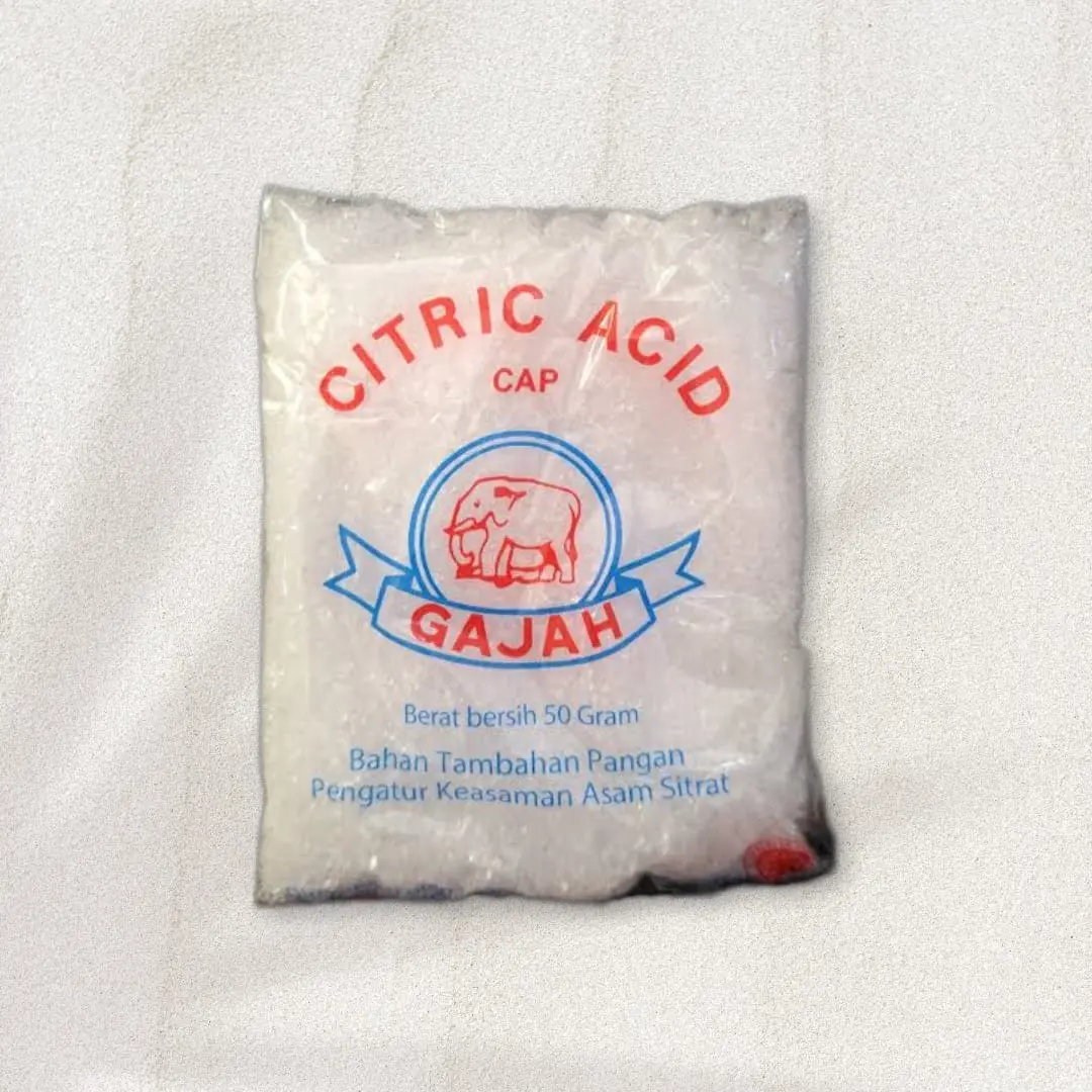 Dapatkan Citric Acid / Citrun acid / Asam Sitrun / Asam Sitrat 250g dan 50g untuk keperluan kebersihan rumah tangga dan memasak di rumah Anda. Dengan kemasan yang praktis, asam sitrat ini dapat dicampurkan dengan makanan atau minuman Anda maupun digunakan sebagai pembersih toilet.