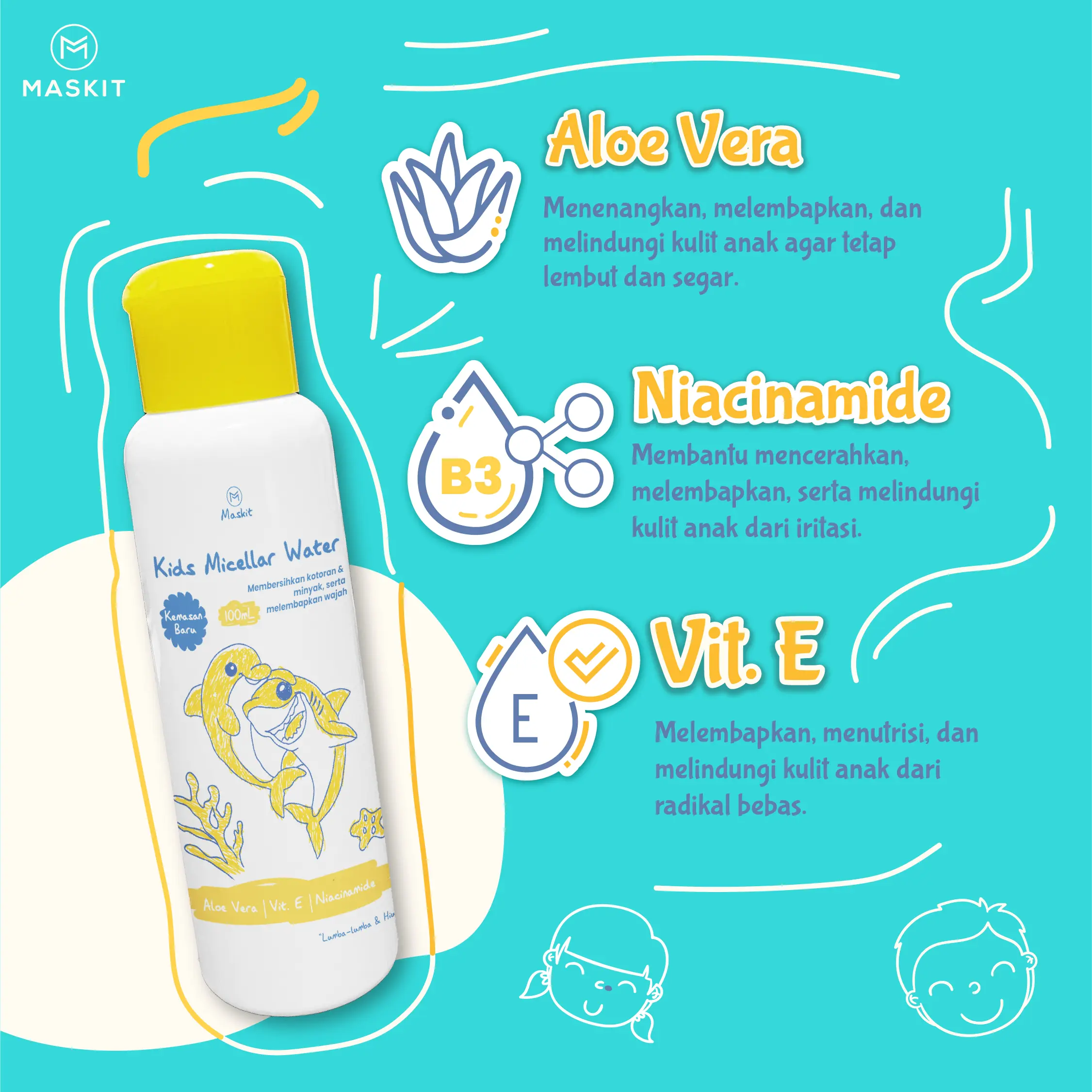 Sudah hadir nih, Kids Micellar Water Face Cleanser | Miselar Water Pembersih Wajah Anak | Pembersih Make Up Kulit Sensitif Maskit 100 ml