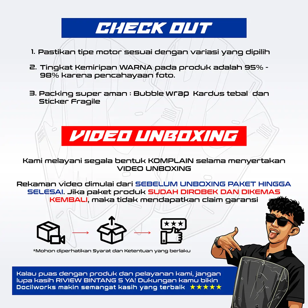 Brocil Demi Kepuasan Terhadap Produk Dan Pelayanan Yang Kami Berikan, Mohon Untuk Perhatikan Aturan Dalam Proses Pesanan Dan Pengiriman. Foto Produk Hanya Sebagai Contoh Bentuk Terpasang, Warna Dan Type Motor Sesuai Dengan Varian Yang Bronya Pilih!