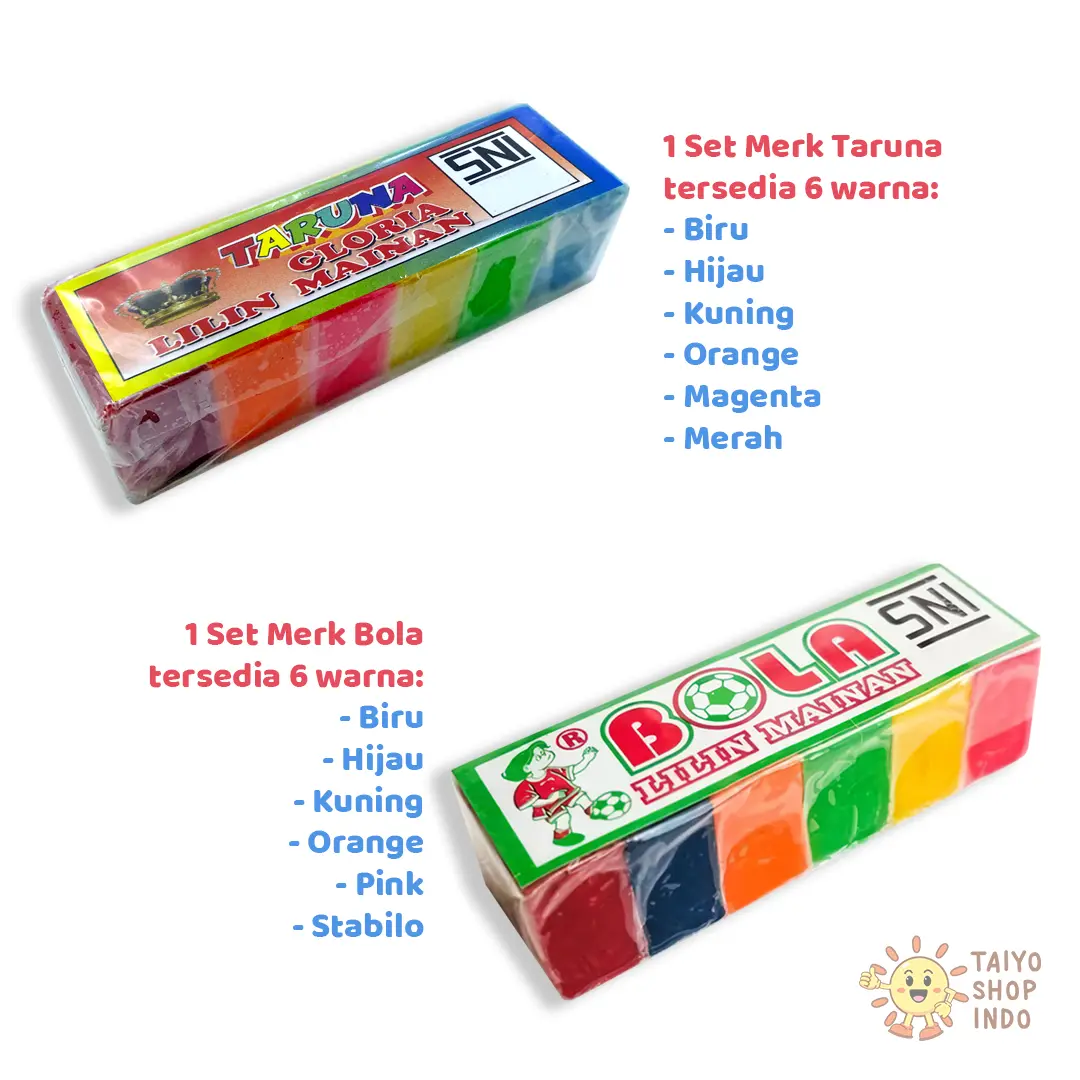 Lilin merk Bola adalah Lilin aman Berbahan Lembut, Tidak Beracun, Gampang Dicuci, Cocok digunakan dengan berbagai macam alat kreasi, Teteskan Air Untuk Mengembalikan kelembutan lilin.