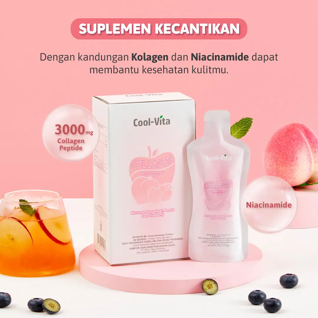·Membantu Menjaga Kesehatan Kulit: Collagen Peptide dalam Coolvita membantu menjaga elastisitas kulitmu serta membantu melembabkan dan mencerahkan kulitmu.