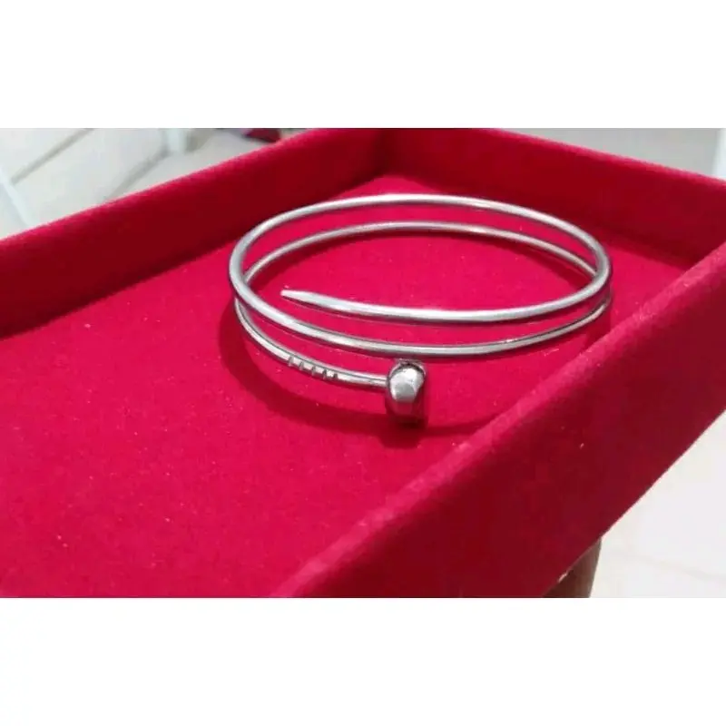 gelang titanium model paku terbuat dari baja putih titanium berkualitas tinggi anti karat tidak luntur selama nya