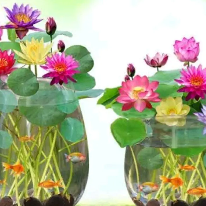 3 butir biji benih tanaman bunga lotus mini mix warna