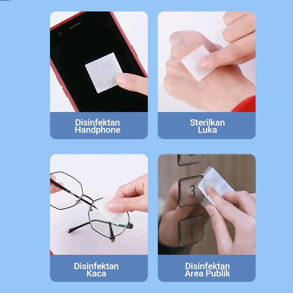 Alkohol Swab / Kapas Alkohol / Tissue Alkohol 75% Kapas atau tisu alkohol antiseptik yang digunakan untuk membersihkan luka, barang kaca dan kulit tubuh 1 PACK ISI 100PCS ** Catatan : -- Semua barang yang ada dietalase Ready Stock dan bisa langsung diorder. -- Barang yang dijual sesuai gambar. -- Barang telah dicek terlebih dahulu sebelum dilakukan pengiriman. -- Barang dipastikan dalam kondisi baik dan dapat digunakan. PERATURAN TOKO Mohon Lakukan Video Unboxing Saat ️Paket Diterima Jika ada kekurangan barang, harap foto Label pengiriman dan Melanjutkan video unboxing TANPA BUKTI VIDEO KAMI TIDAK DAPAT MEMPROSES KOMPLAINAN. Terima kasih & Selamat berbelanja Jangan Lupa Bintang 5 .