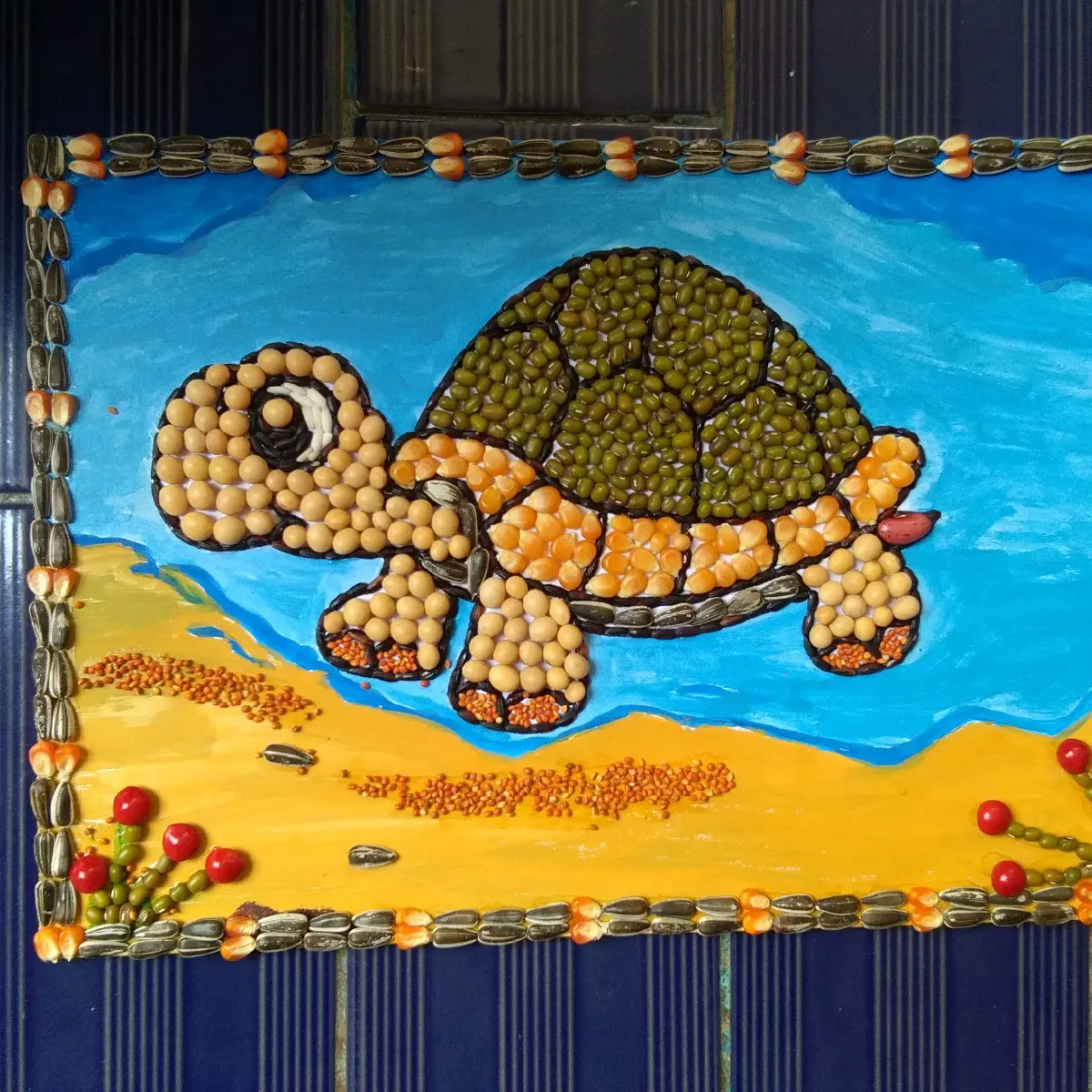 kolase biji bijian sudah jd gambar kura2 latar lukis ukuran a4 untuk prakarya sekolah