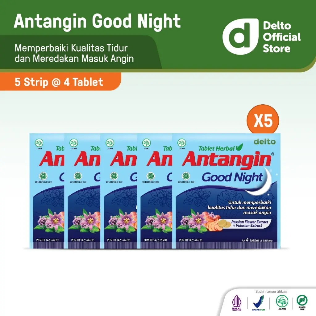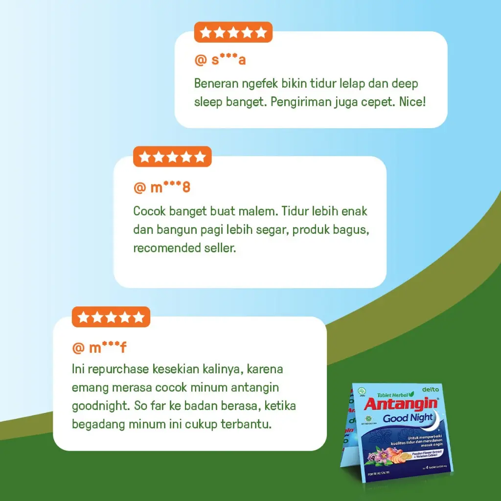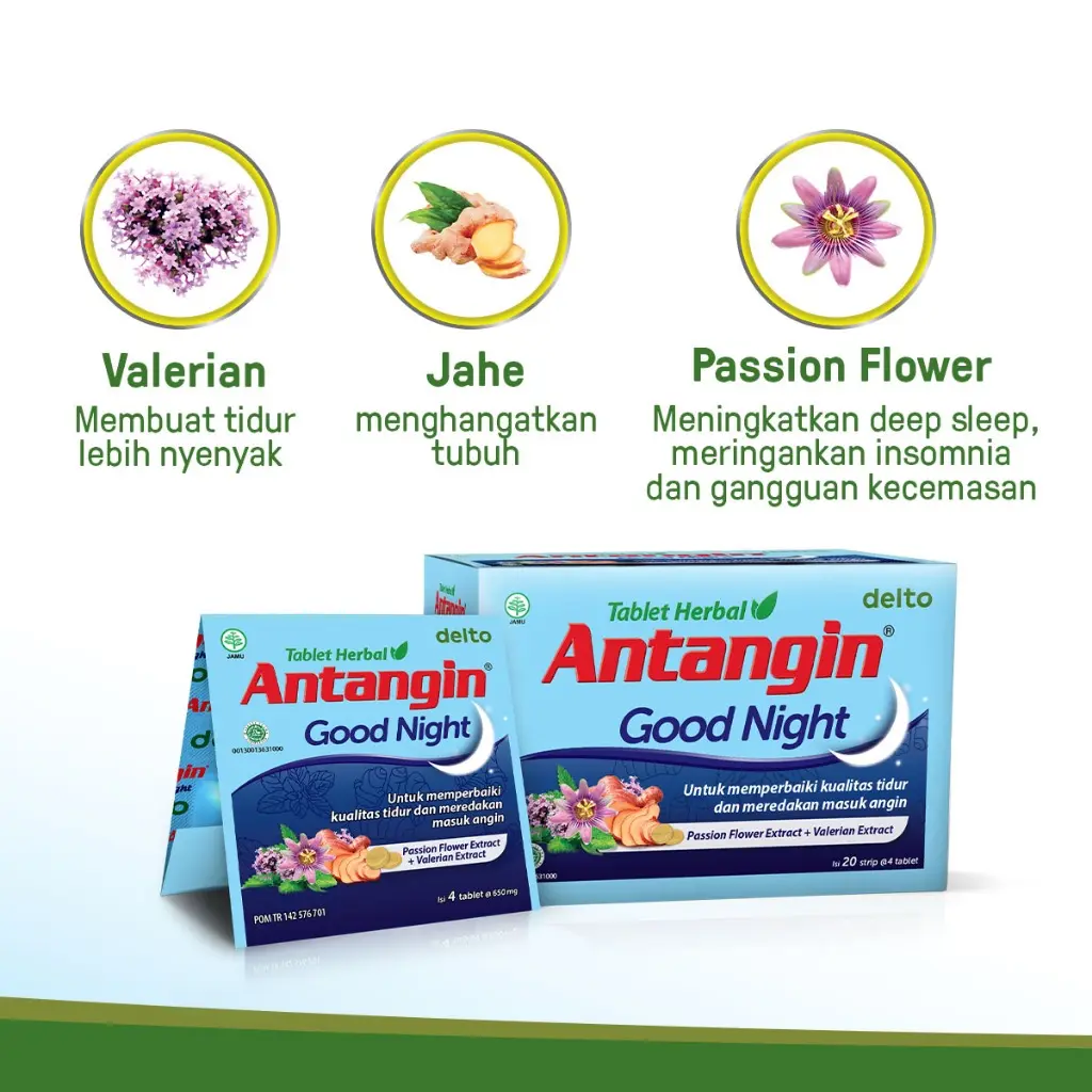Antangin Good Night Tablet Herbal untuk membantu memperbaiki kualitas tidur dan meredakan masuk angin.