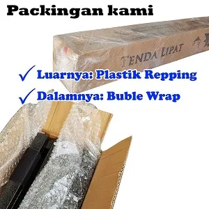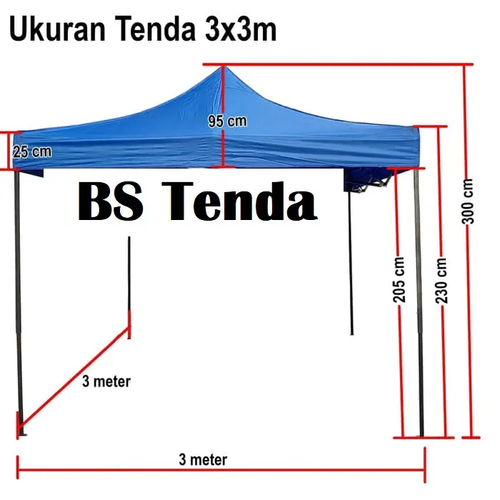 - Paketan tenda lipat ini biasa disebut ukuran 3 x 3 (panjang 3 meter dan lebar 3 meter)