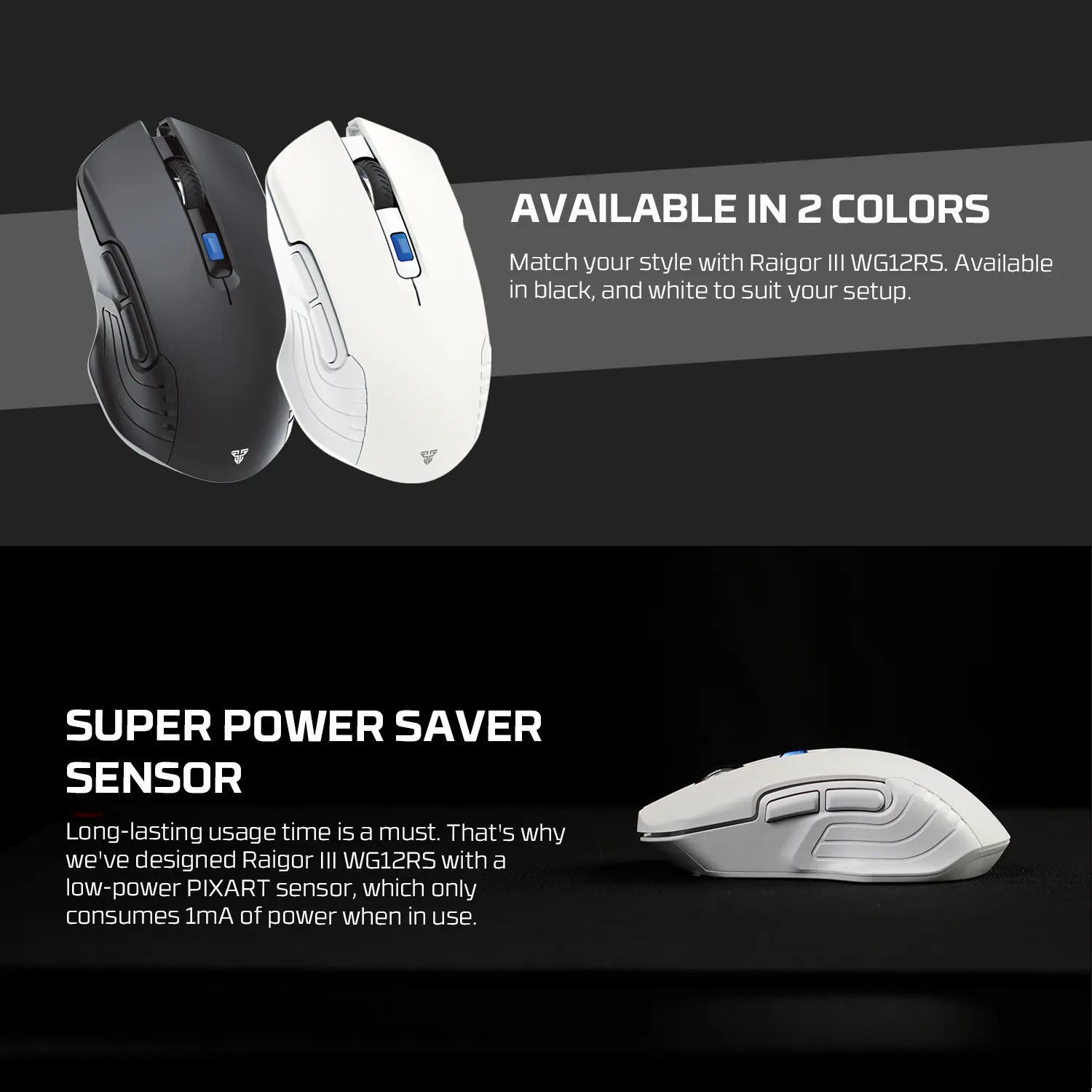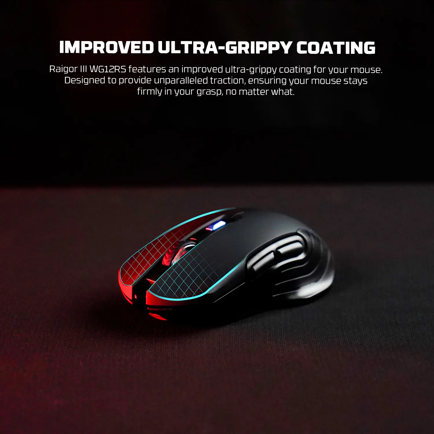 Raigor III WG12 menggunakan low-power sensor dari Pixart yang hanya mengonsumsi daya 1mA saat dipakai.