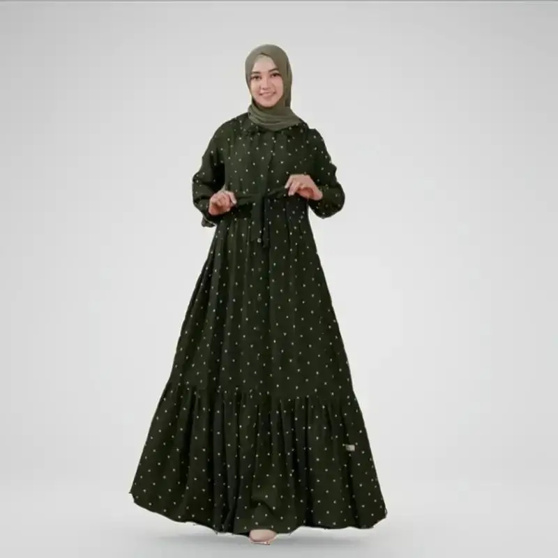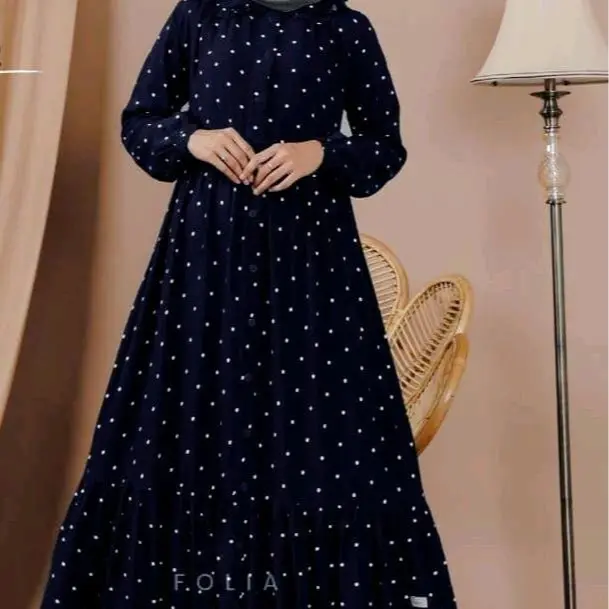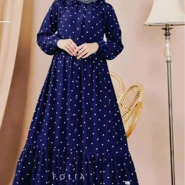Gamis Polkadot Terbaru,Baju Muslim Wanita, Dress Wanita Kain Rayon High Panjang