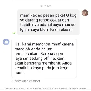 - Jika ada keluhan, mohon chat dulu sebelum memberi penilaian, kami akan bertanggung jawab sebaik mungkin, namun jika langsung memberi bintang 1 tanpa konfirmasi kami sudah tidak bisa bantu.