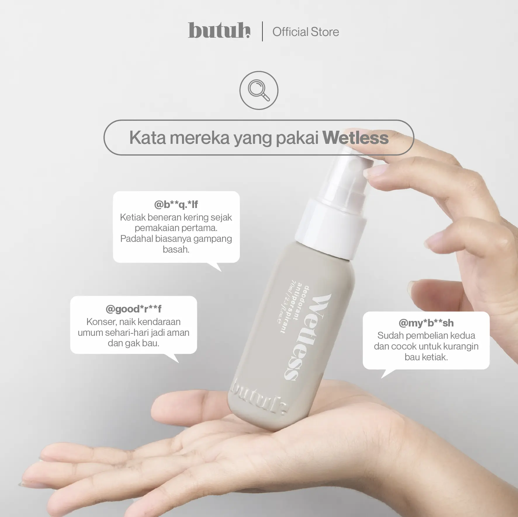 Wetless adalah antiperspirant bebas alcohol, fragrance serta paraben. Memiliki tekstur watery yang mudah meresap, ringan dan tidak lengket di kulit serta tidak meninggalkan noda pada kulit ketiak dan pakaian.