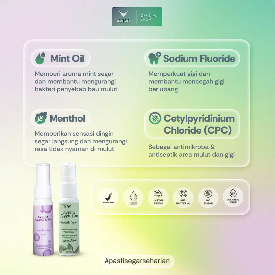 ✨ Fungsi Utama ✨- Membantu menyegarkan napas dengan sensasi segar dan manis.- Terbuat dari bahan aman, cocok untuk bumil dan busui.- SANGAT AMAN, terdaftar di BPOM (NA18231400093) dan HALAL MUI LPPOM-00150255850924.