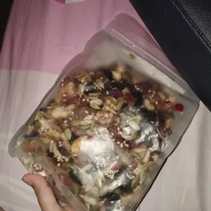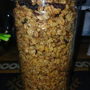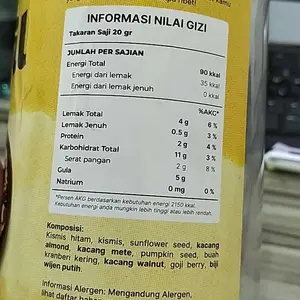 Udah mau habis nih cemilan sehat yang enak banget dan nggak ngebosenin kalau dimakan. Cuma sedikit kurangnya biji-biji kecilnya kurang kering jadi kerasa nggak renyah hehe apa memang begitu ya? Tapi overall cemilan kesukaanku sih